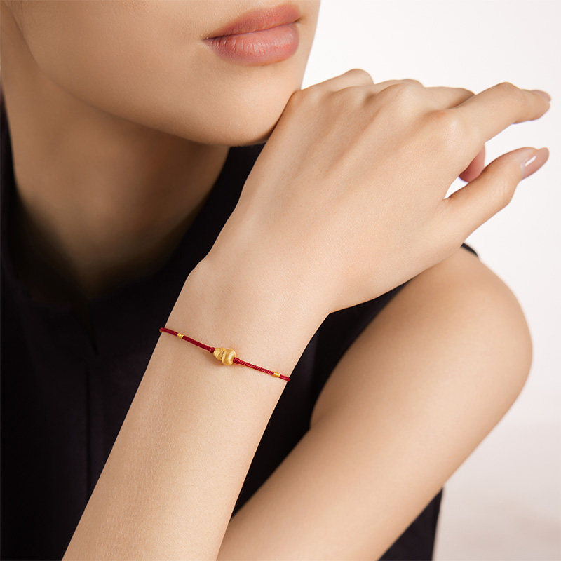 【中国黄金官方店】黄金转运珠5D拉丝葫芦手绳足金手饰新品送女友