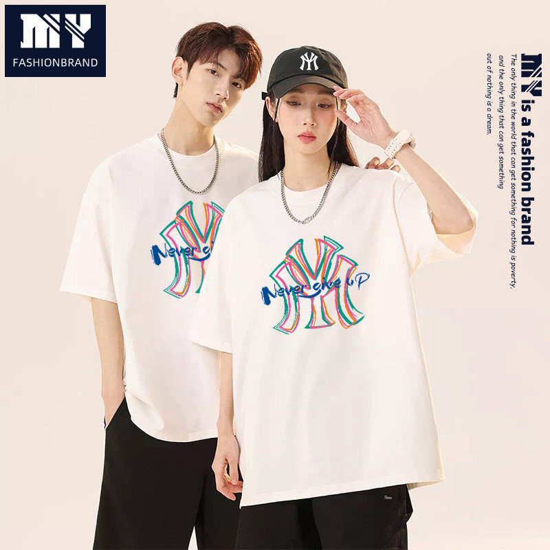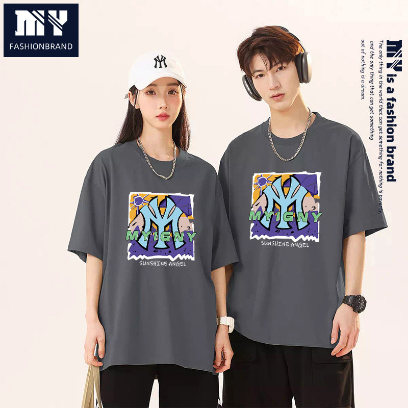 MY清仓!夏季时尚街头纯棉T恤男女同款套头半截袖上衣休闲款HB