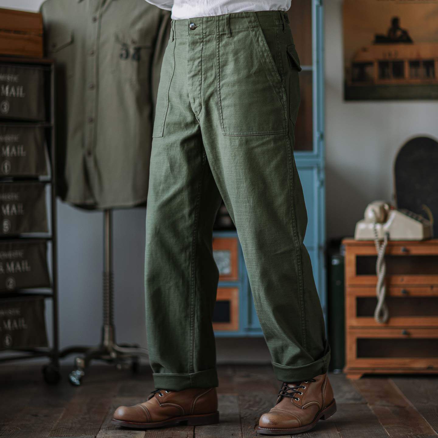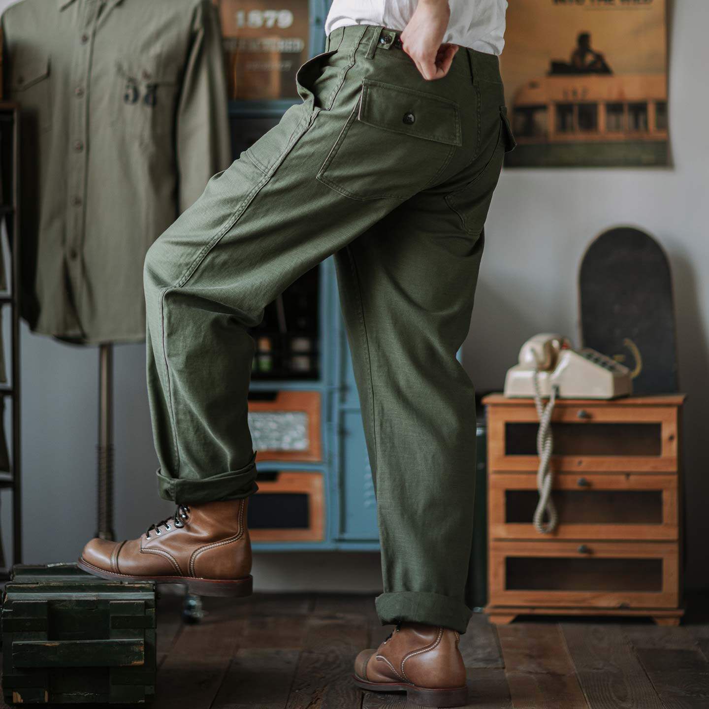 淘宝靛海 美式复古军裤复刻元年og107长裤军绿色工装裤男直筒休闲裤子