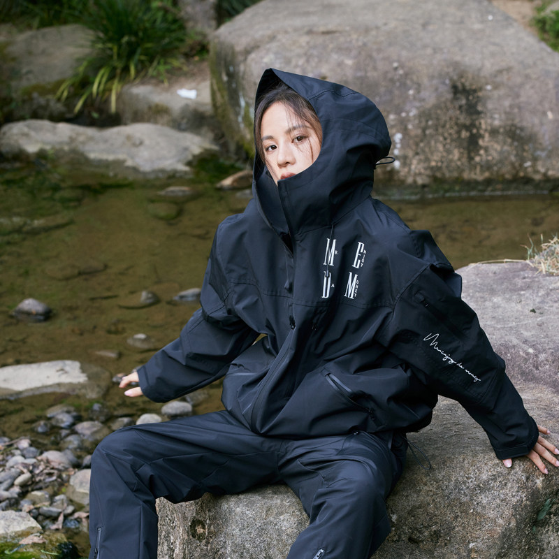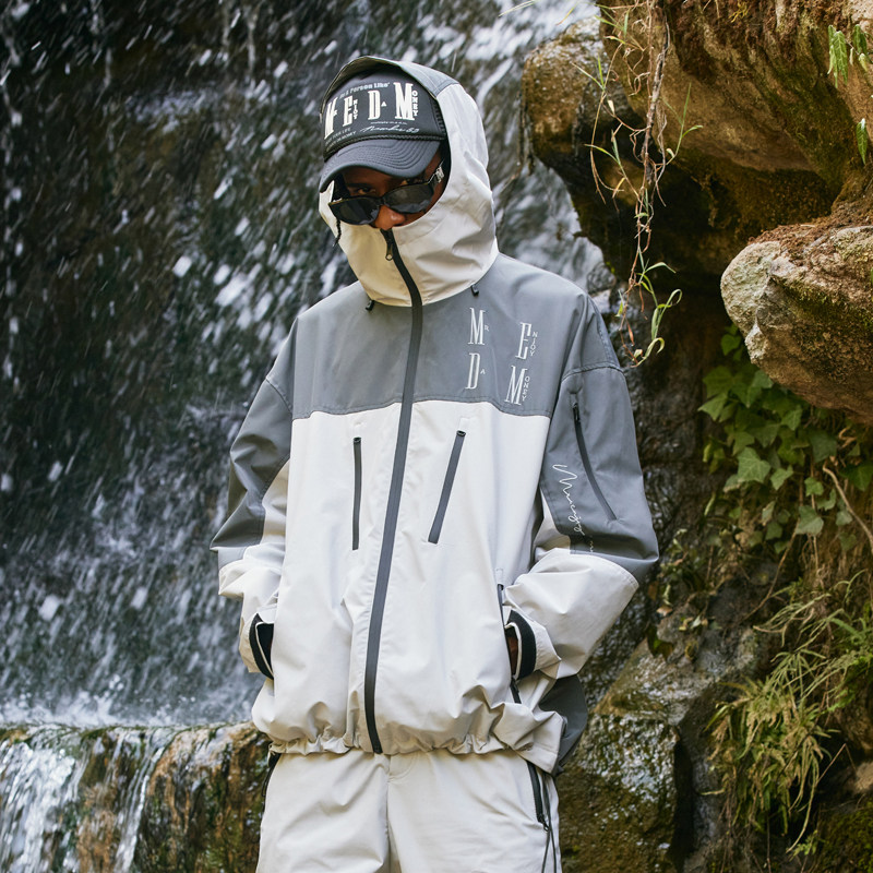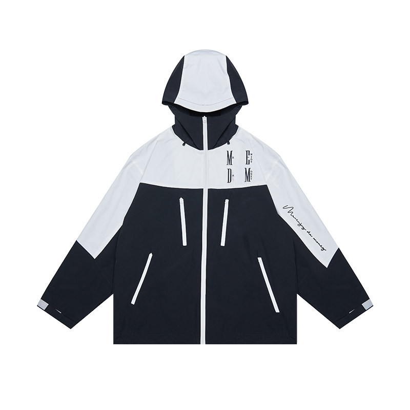 MEDM国潮户外防风连帽冲锋夹克外套男潮牌秋美式休闲撞色宽松夹克