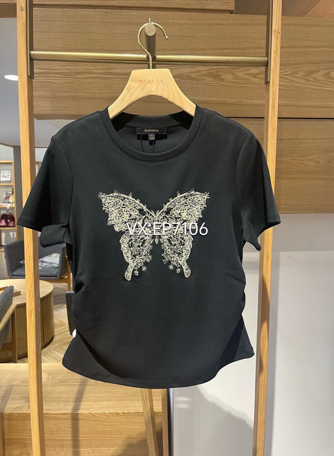 --------------------- 大雅家春夏款黑色圆领订珠蝴蝶图案短袖T恤 HFKEC5323A-1699 【原售价】299元 【现售价】299元 【推荐理由】