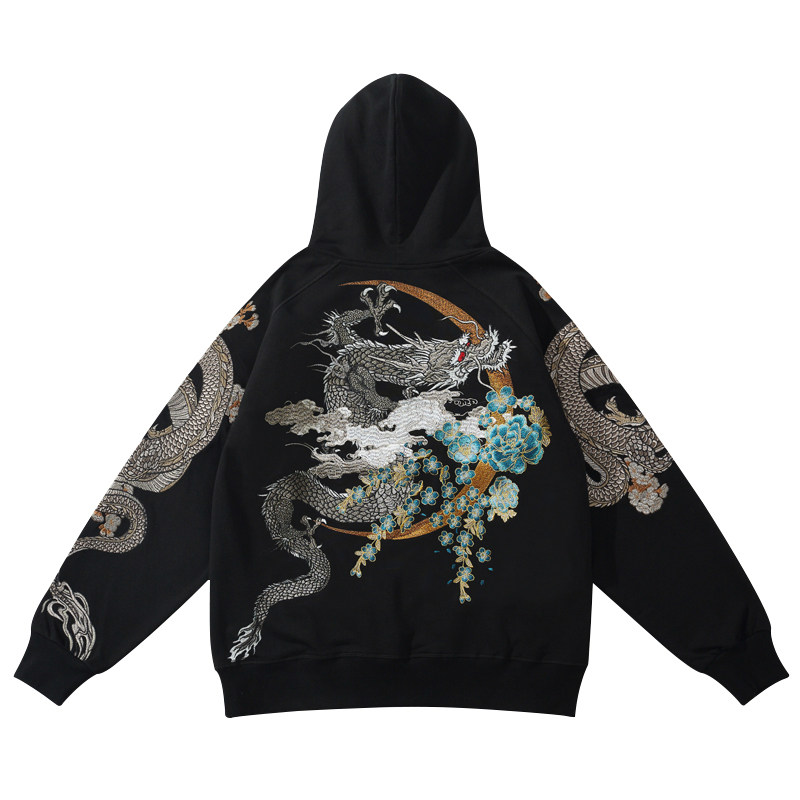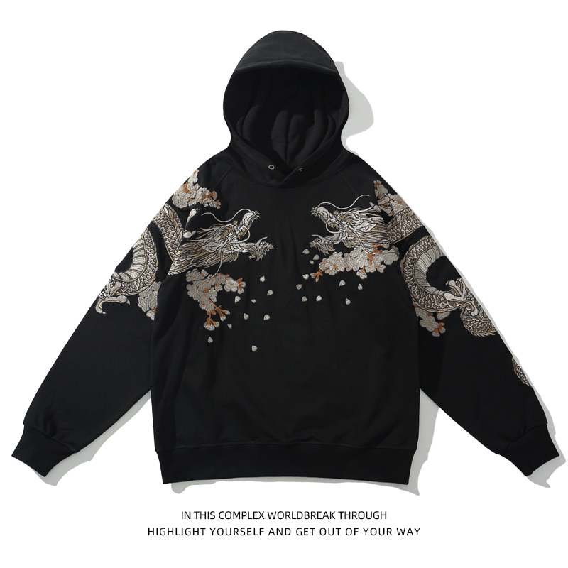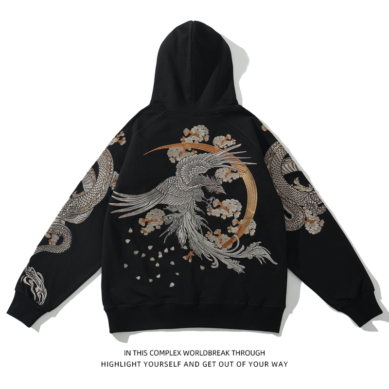 2026国潮龙刺绣中国风龙朱雀男连帽情侣卫衣横须贺个性小众外套
