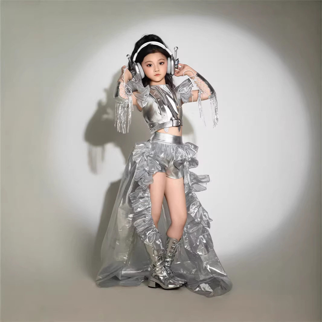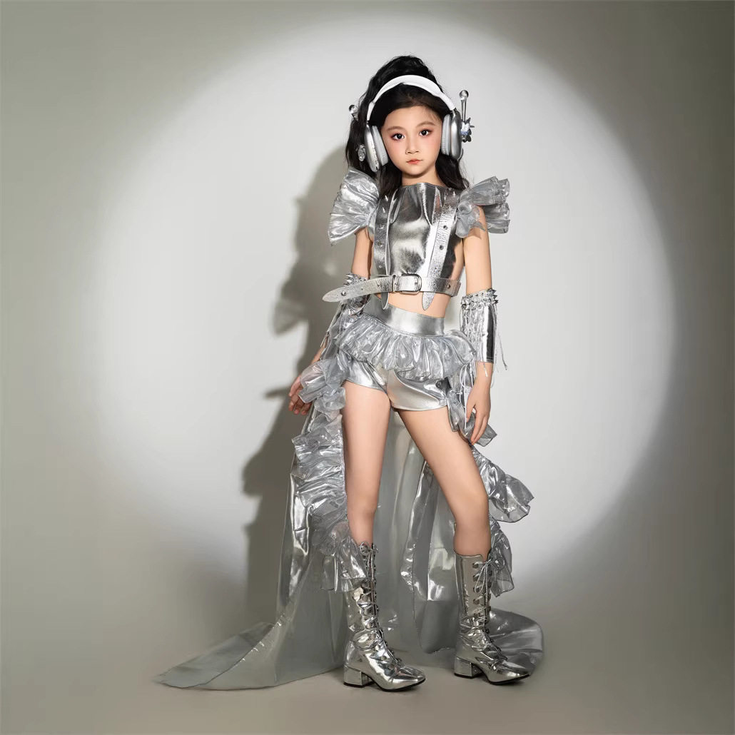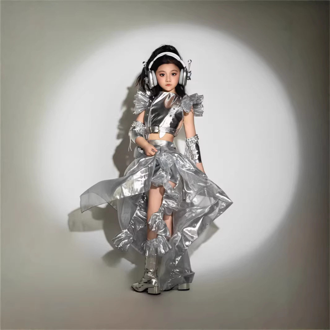 淘宝儿童未来科幻风银色套装赛博朋克元宇宙机械姬走秀服三体科技模卡