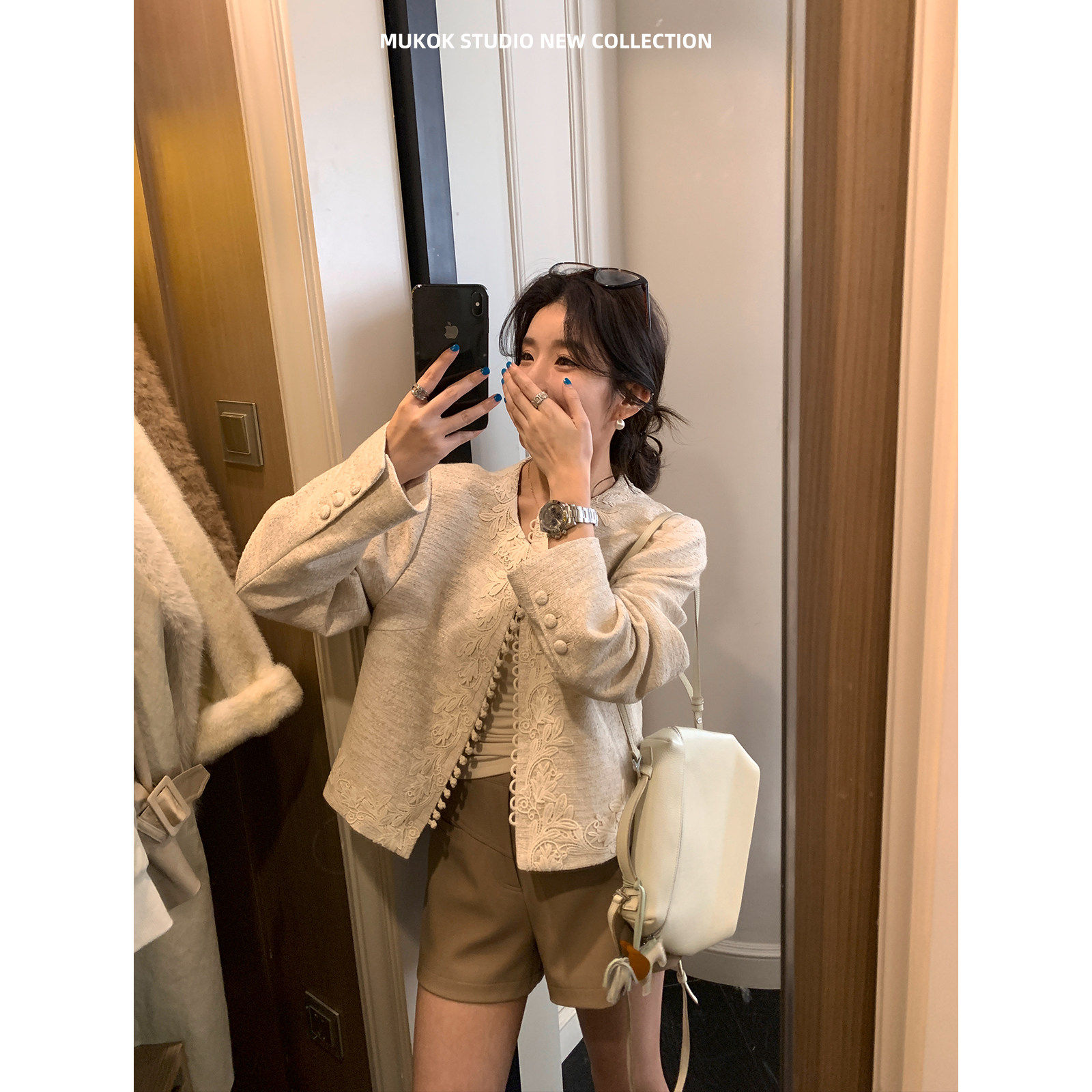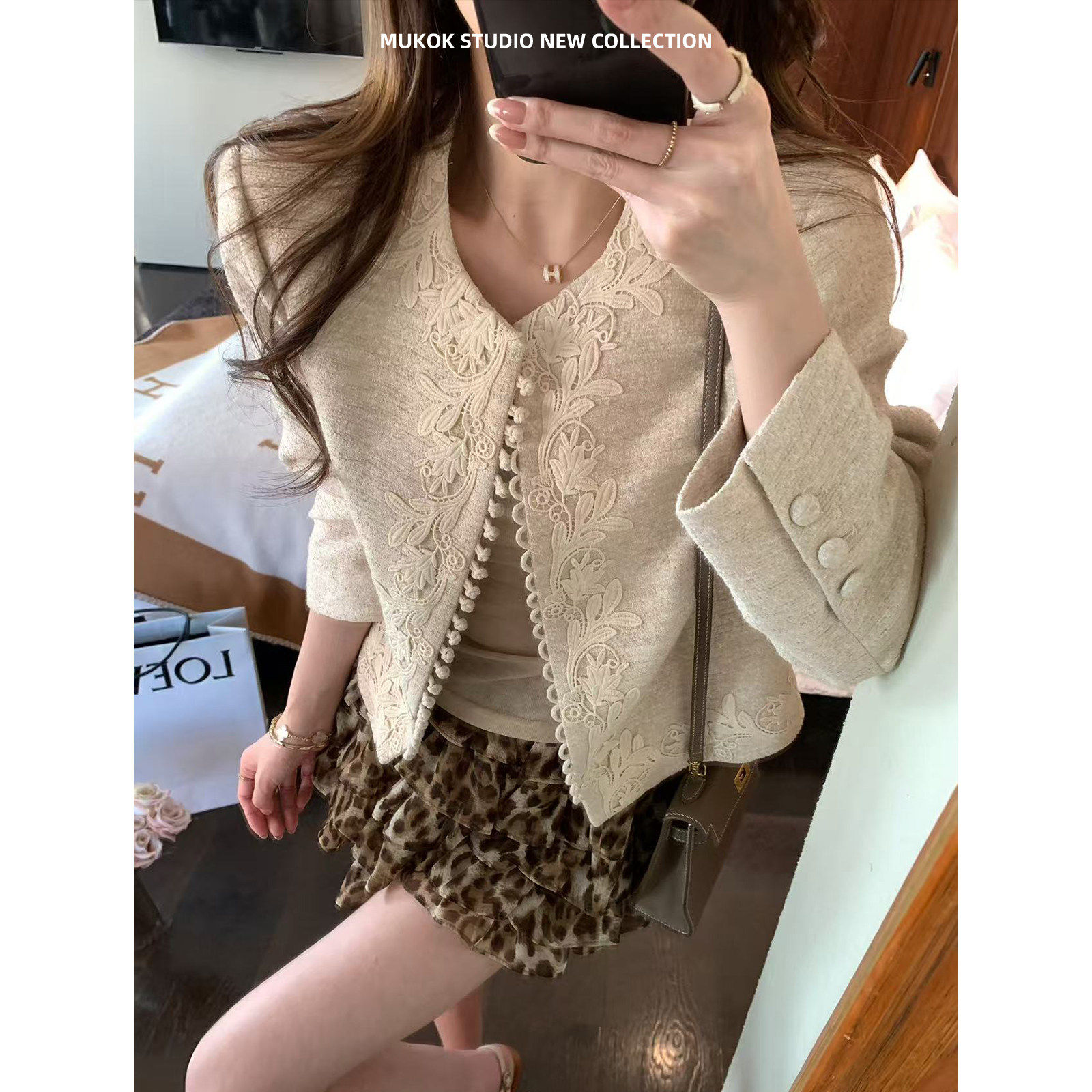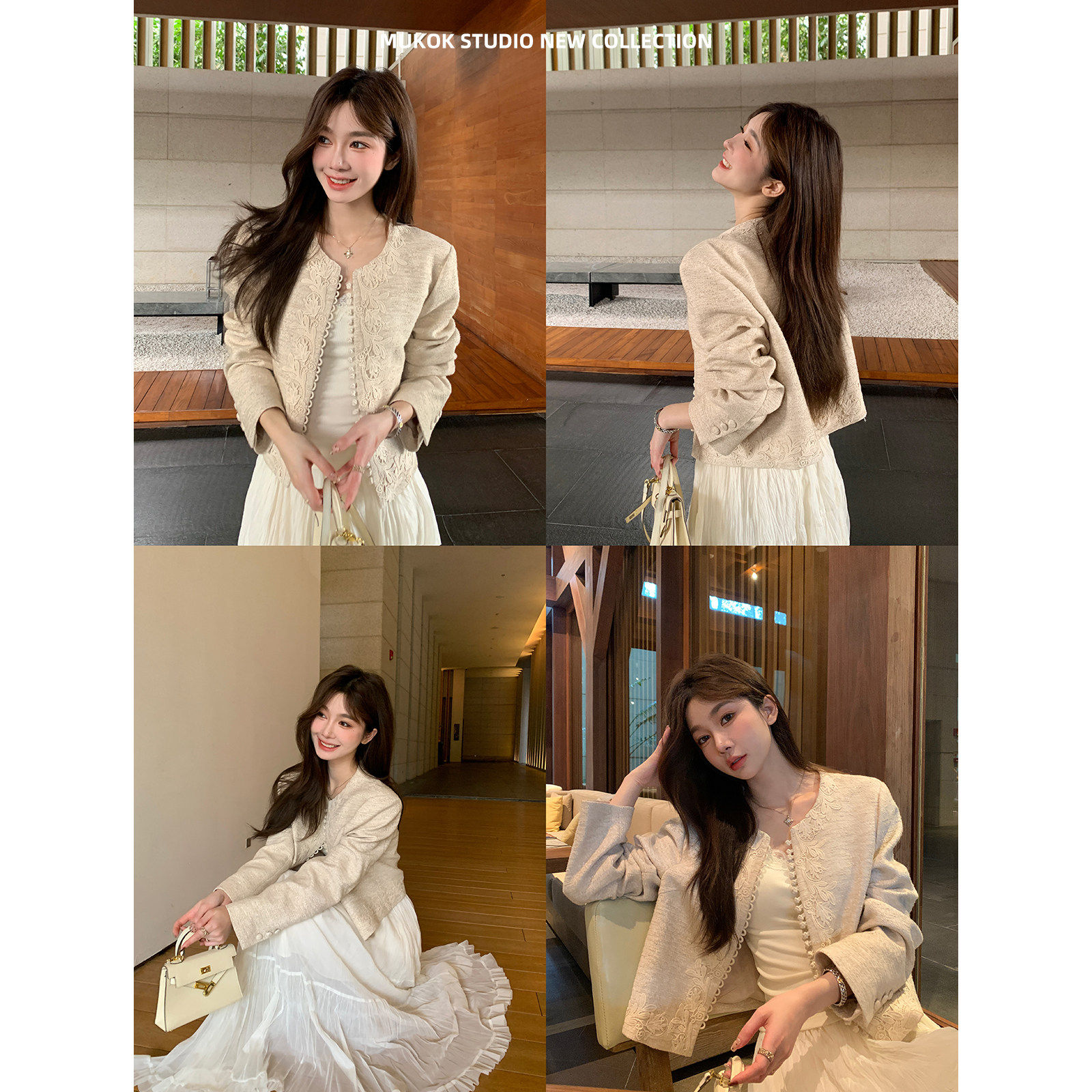淘宝MUKOK 新中式绣花重工定制小香风短外套女春秋新款肌理感百搭上衣