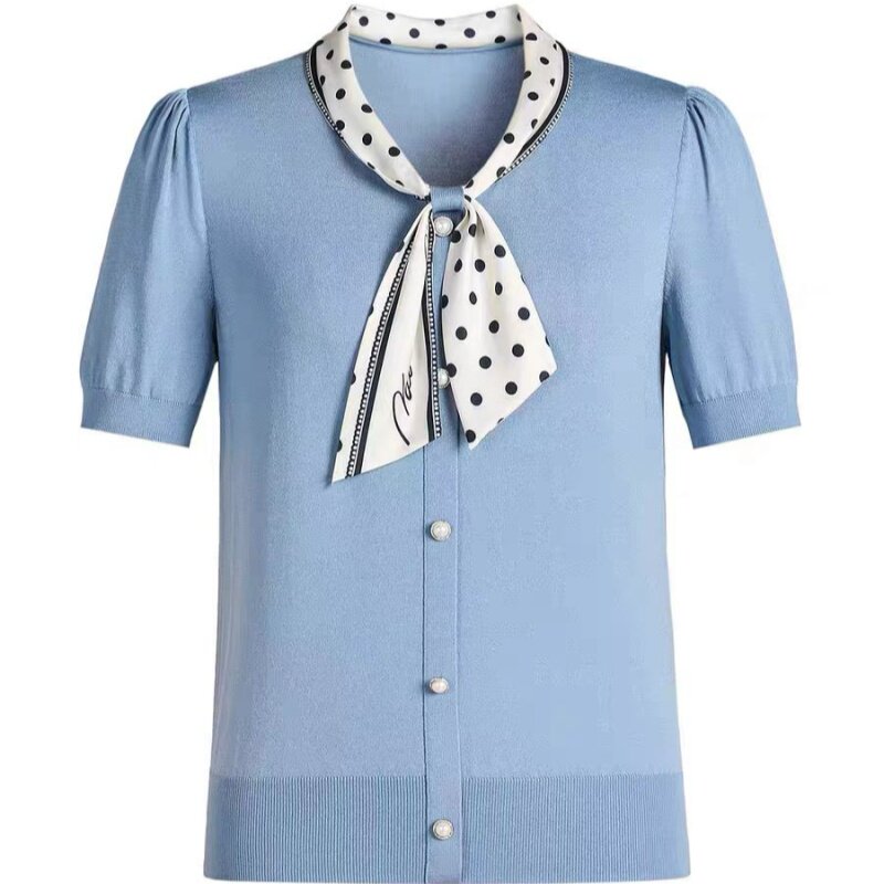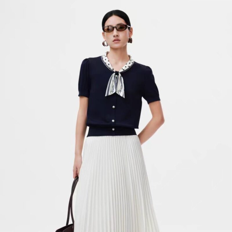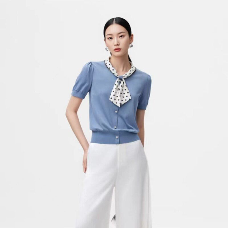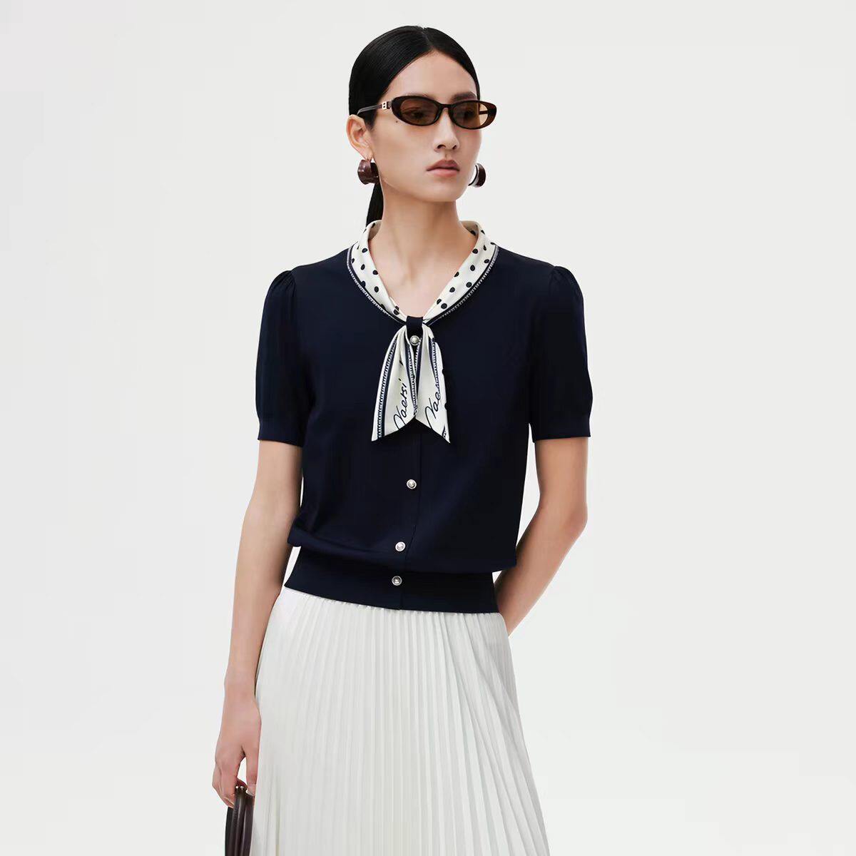 --------------------- 娜家女装2026夏季新品时尚波点飘带复古高级感撞色针织衫短袖上衣 --------------------- --------------------- 【原价】299元 【券后价】244元