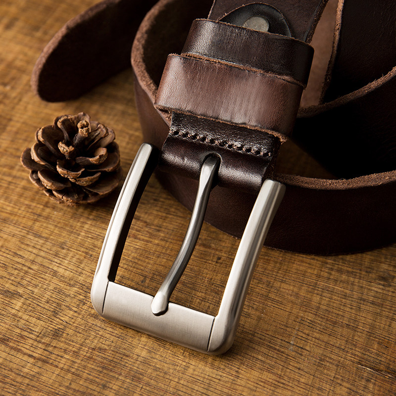 原创真皮男皮带头层牛皮针扣不锈钢防过敏简约休闲腰带复古裤腰带