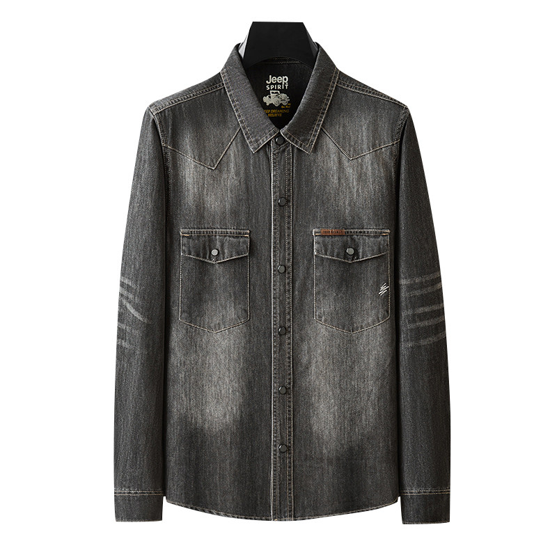 新款秋季男士做旧衬衫潮流休闲时尚牛仔长袖