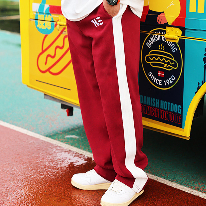 核爆炸红色白条两道杠校服长裤子怀旧国潮学生休闲卫裤宽松运动裤