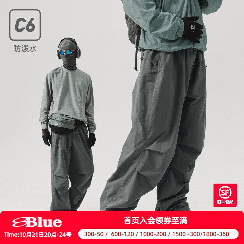 蓝岐秋季新款户外防泼水工装裤男款休闲直筒弯刀裤二代降落伞裤子