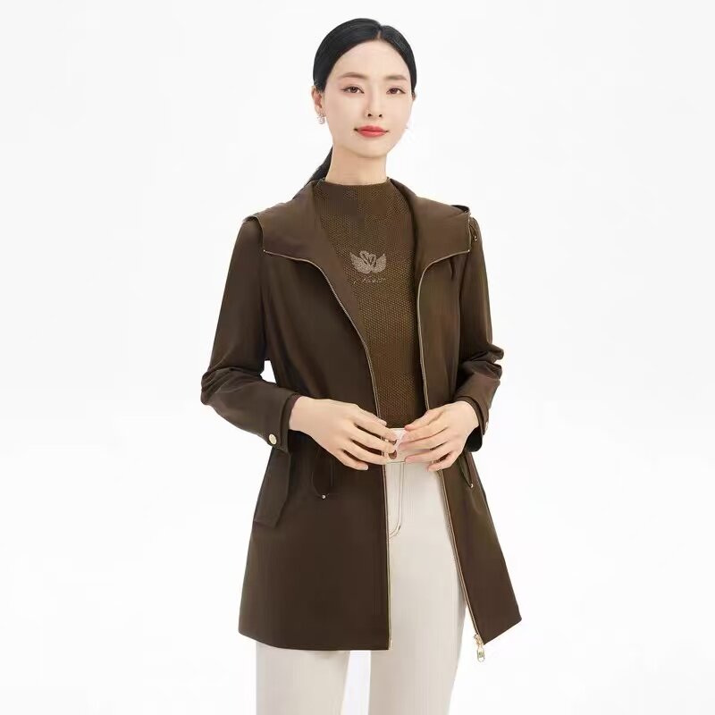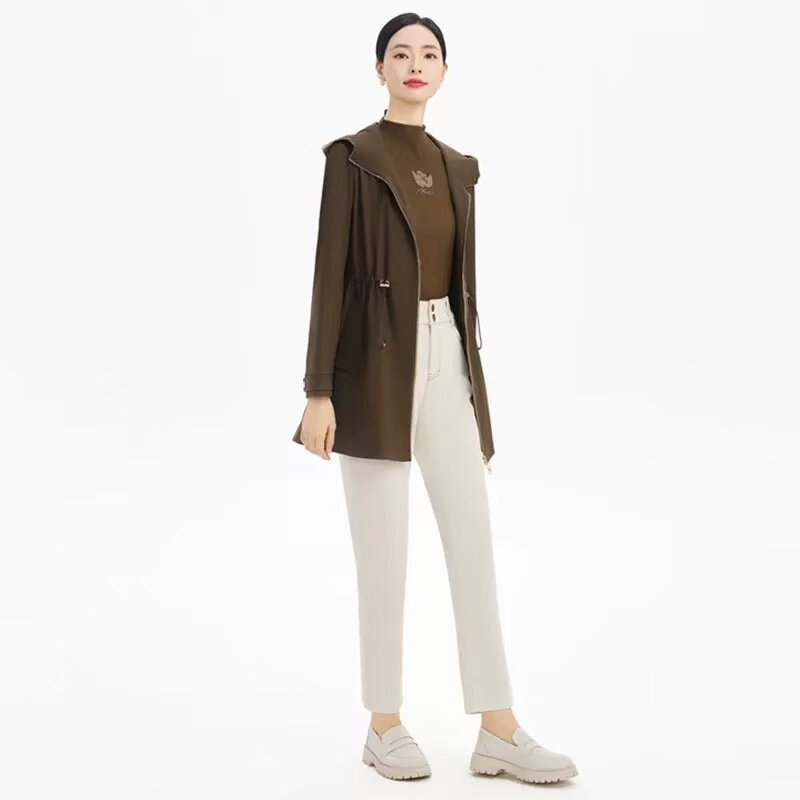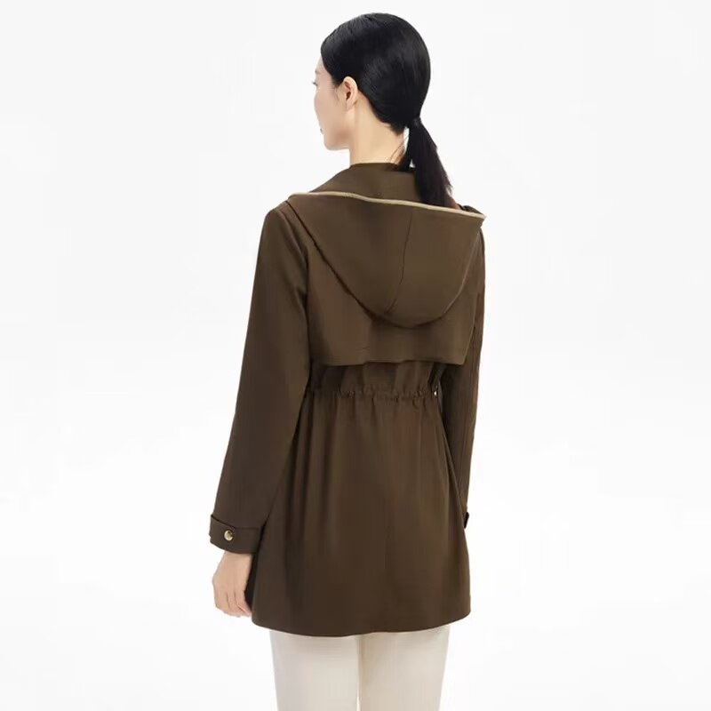娜家商场同款女装2025秋季新款时尚连帽收腰显瘦抽绳休闲风衣外套