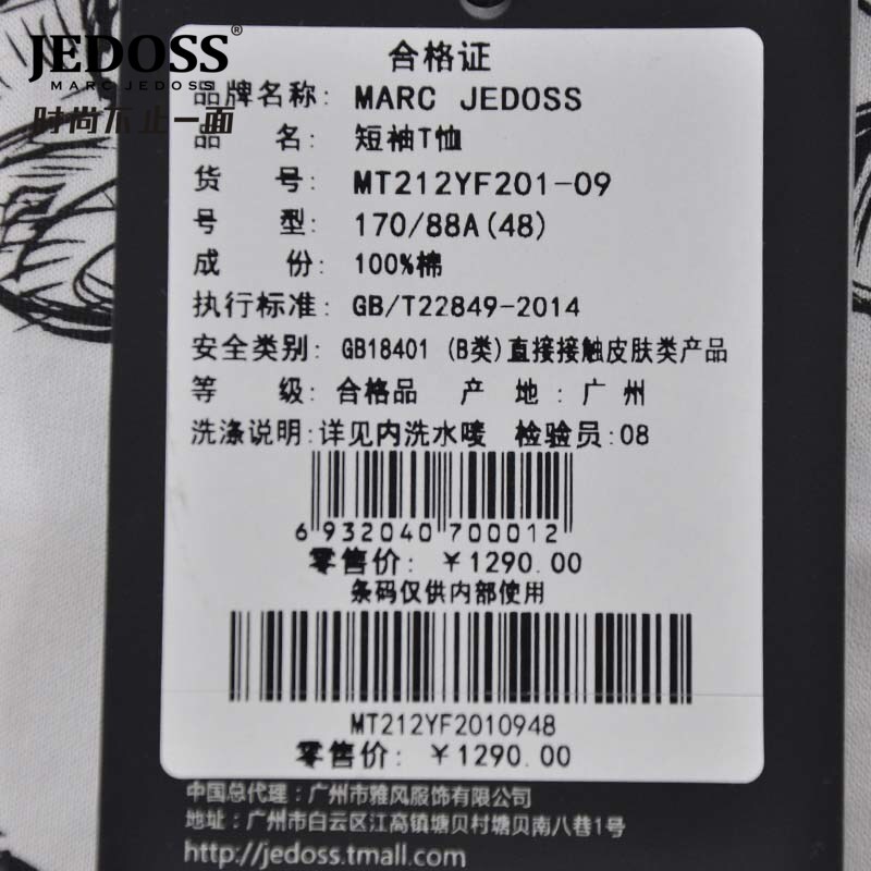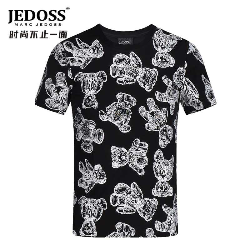 淘宝JEDOSS/爵迪斯男装夏季专柜款玩具熊满印圆领修身短袖T恤潮201