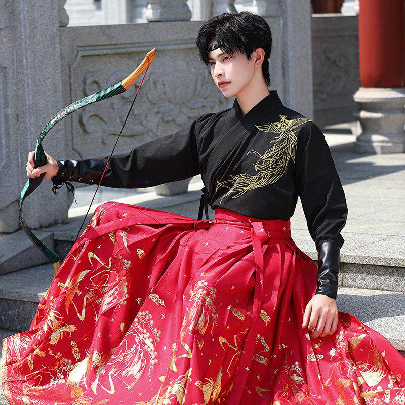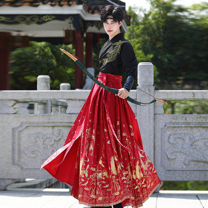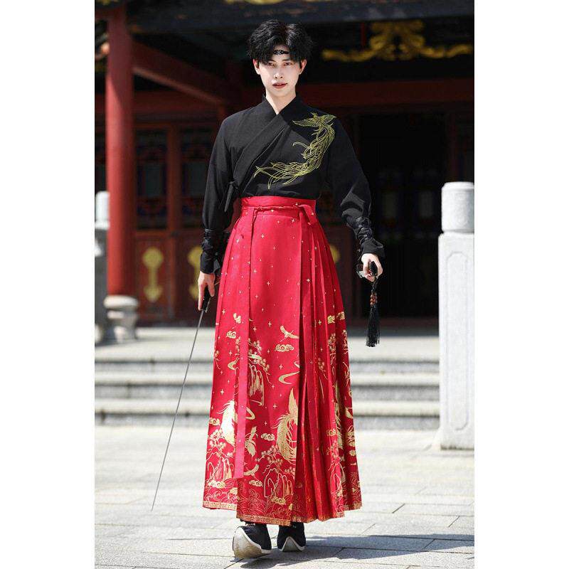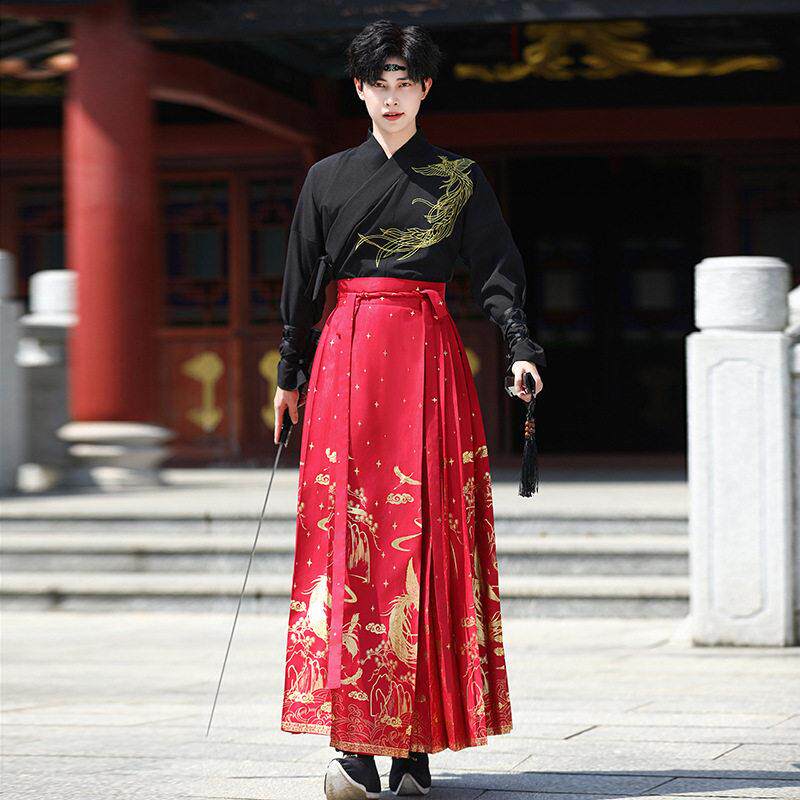 --------------------- 新中式男中国风汉元素刺绣交领长袖烫金马面裙红色武侠风cp套装 【原售价】21元 【现售价】21元 【推荐理由】