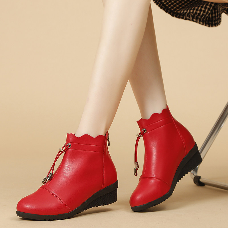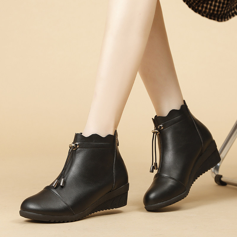 春秋单鞋舒适软底软面妈妈鞋真皮坡跟女鞋中跟中老年广场跳舞鞋