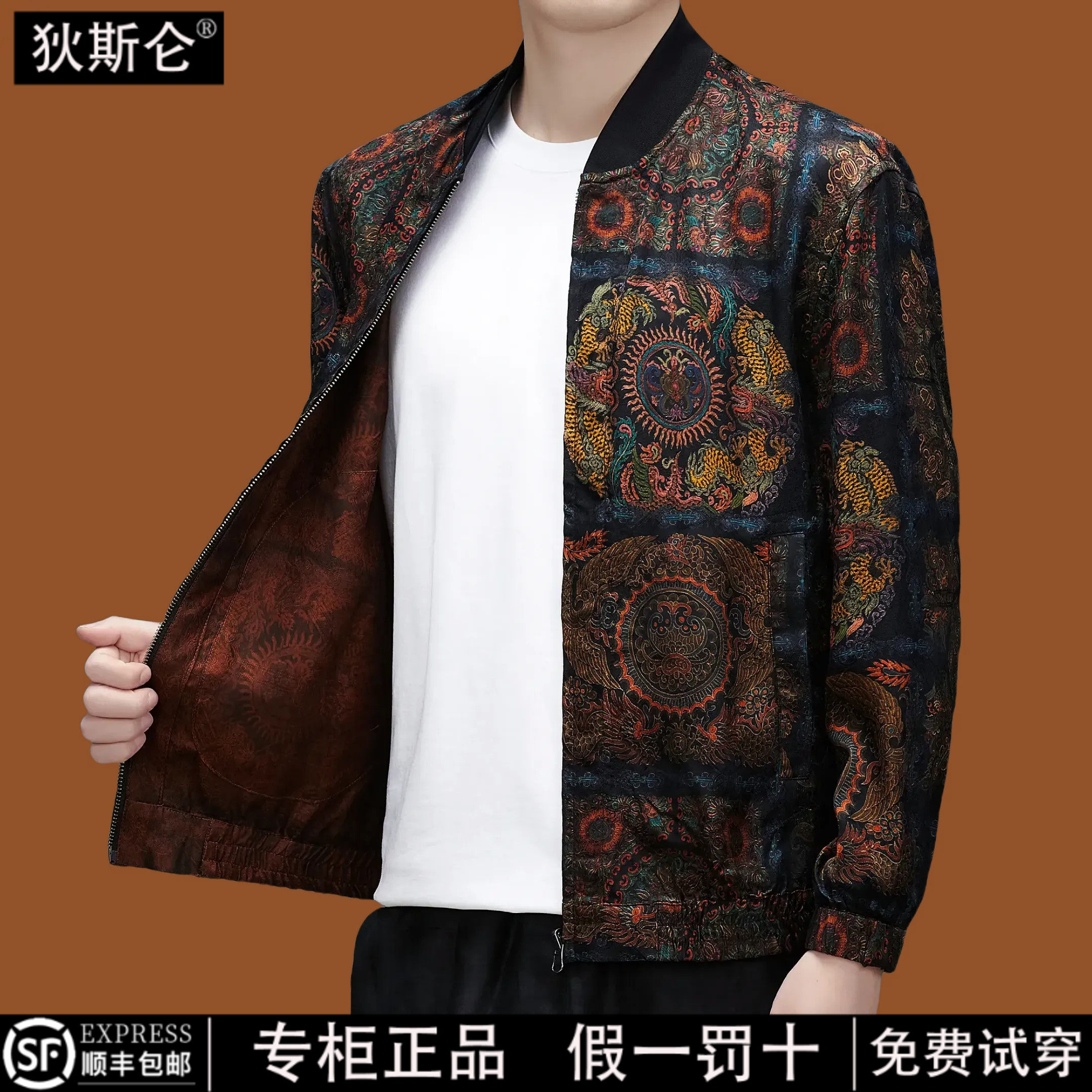 --------------------- 狄斯仑100%桑蚕丝新中式立领夹克男春秋棒球领真丝外套男国潮男装 【原售价】9800元 【现售价】1751元 【推荐理由】