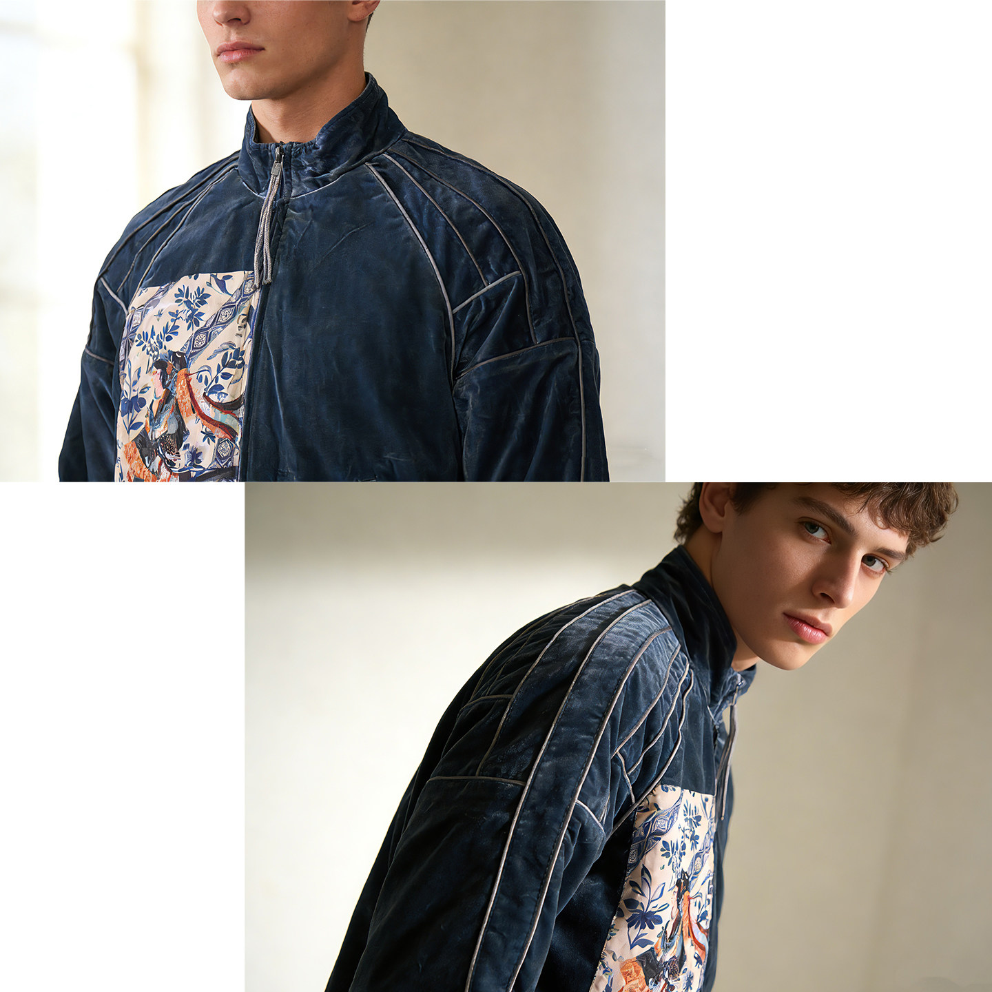 --------------------- 浮世曼波中式复古金丝绒立领男女通用宽松印花拉链外套棒球服国潮 --------------------- --------------------- 【原价】359元 【券后价】286.64元
