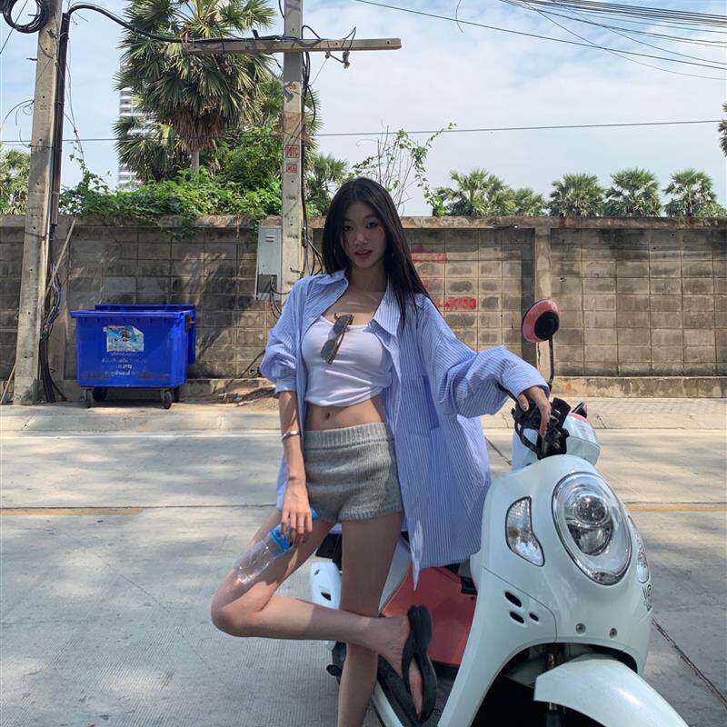 --------------------- fortunee春夏条纹度假休闲防晒长袖衬衫女慵懒风韩版宽松显瘦上衣 --------------------- --------------------- 【原价】83.8元 【券后价】73.8元
