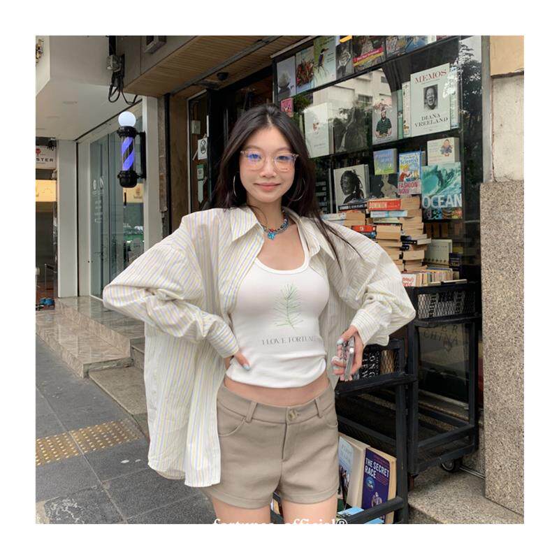 fortunee春夏条纹度假休闲防晒长袖衬衫女慵懒风韩版宽松显瘦上衣