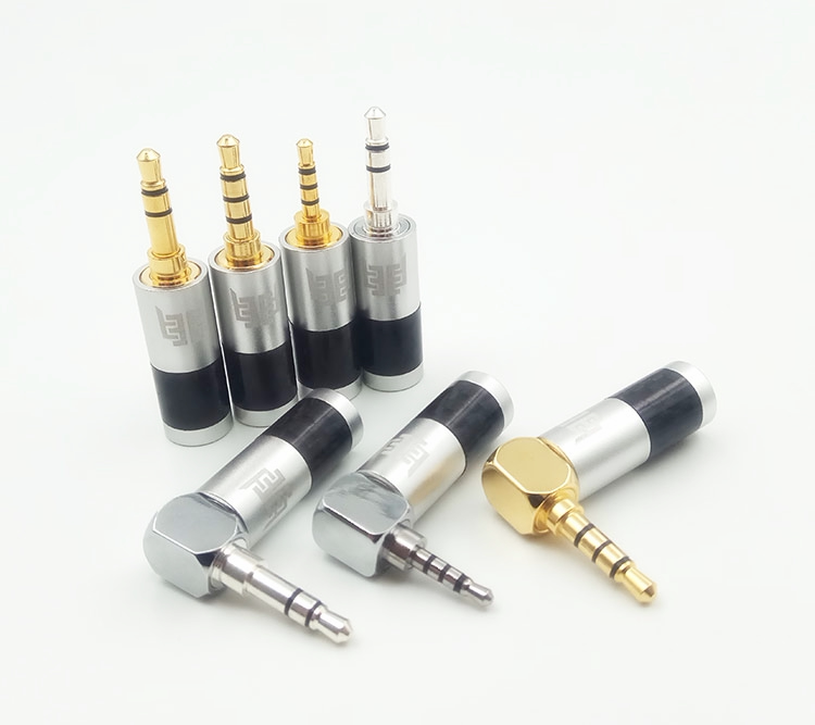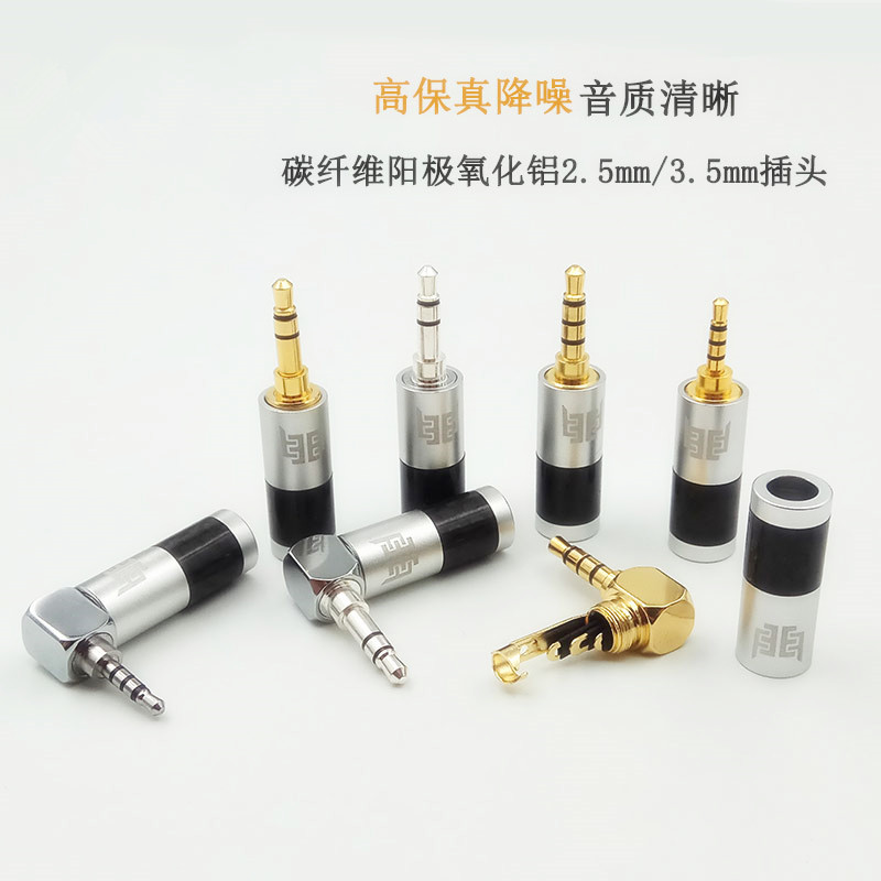 2.5/3.5mm3/4节直/弯插镀金/银立体声耳机插头阳极氧化铝碳纤轻便
