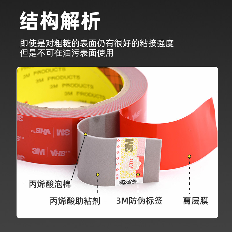 3M正品双面胶5608VHB灰色泡棉强粘力汽车ETC用加厚耐高温无痕防水