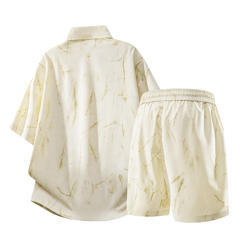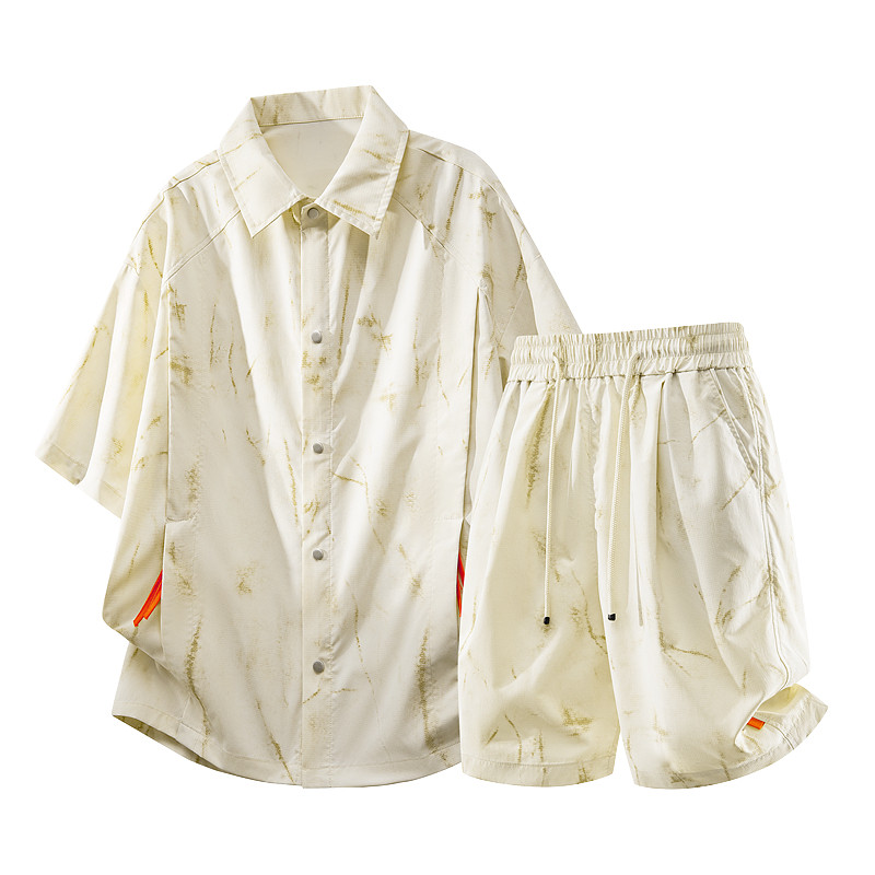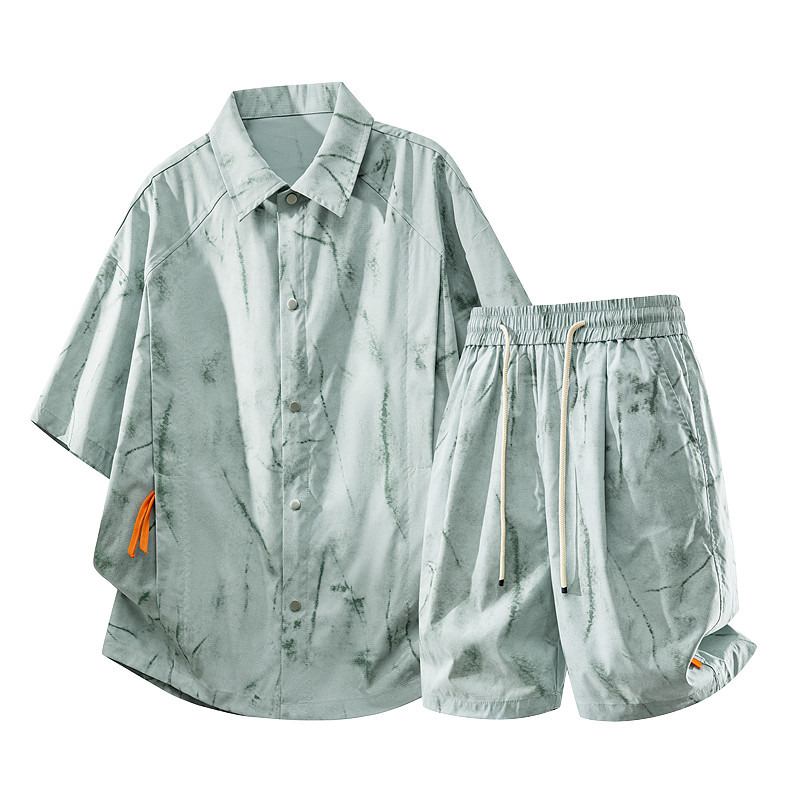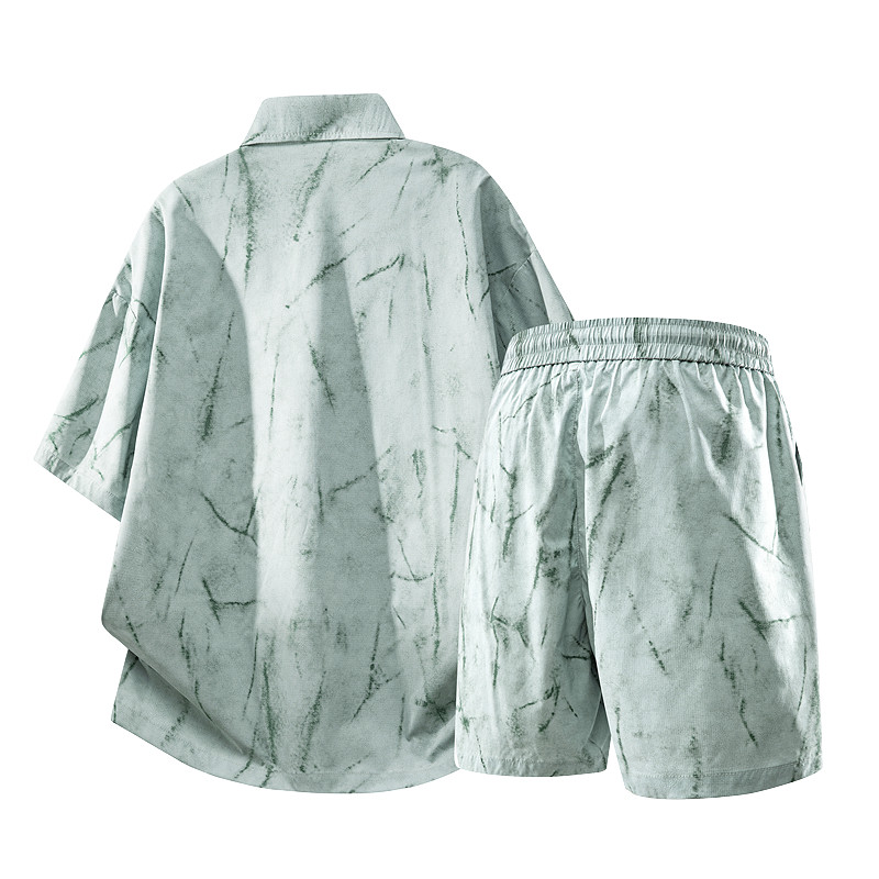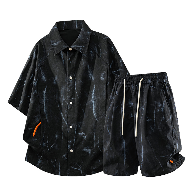 WASSUP NURAYA扎染短袖衬衫套装男夏季新款青年休闲短裤两件套男
