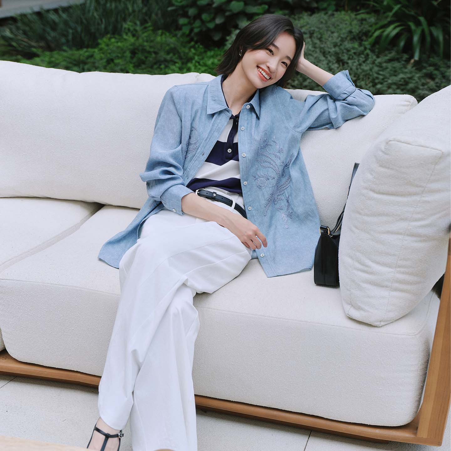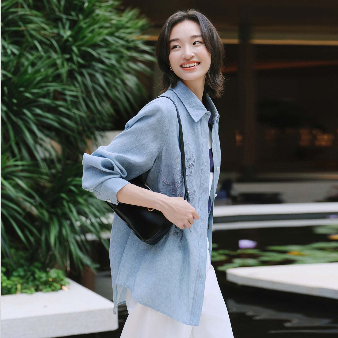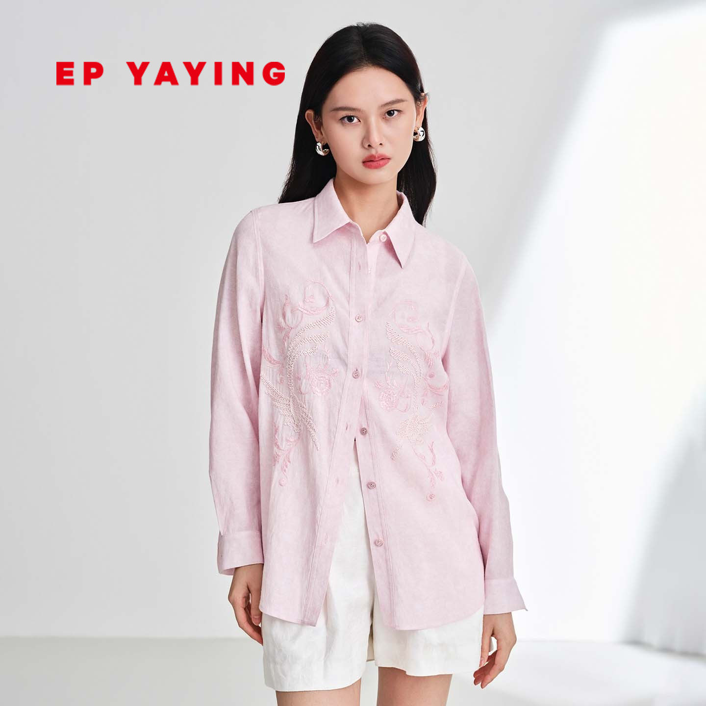 淘宝EP雅莹衬衫女 亚麻混纺宽松珠片刺绣衬衫 2026春夏新款2118A