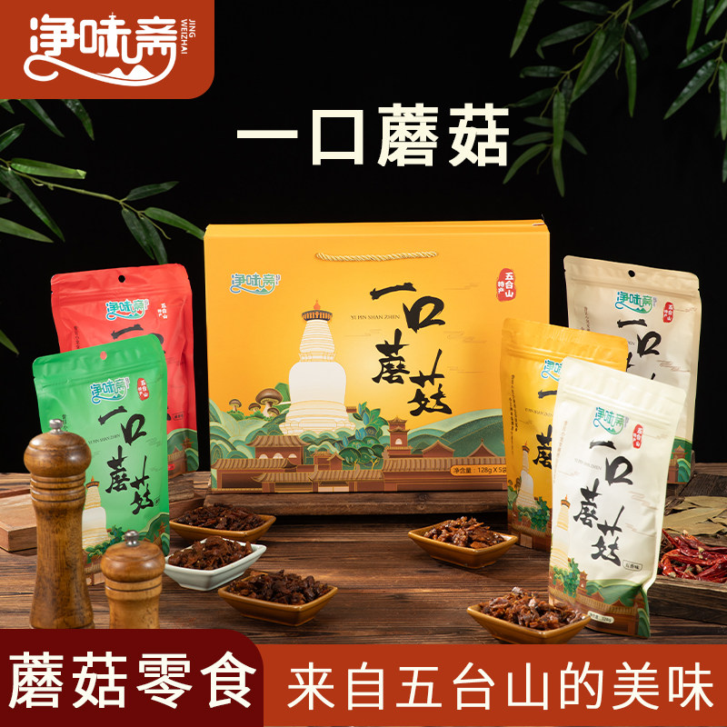 山西五台山特产净味斋一口蘑菇零食办公室宿舍好吃的休闲即食128g