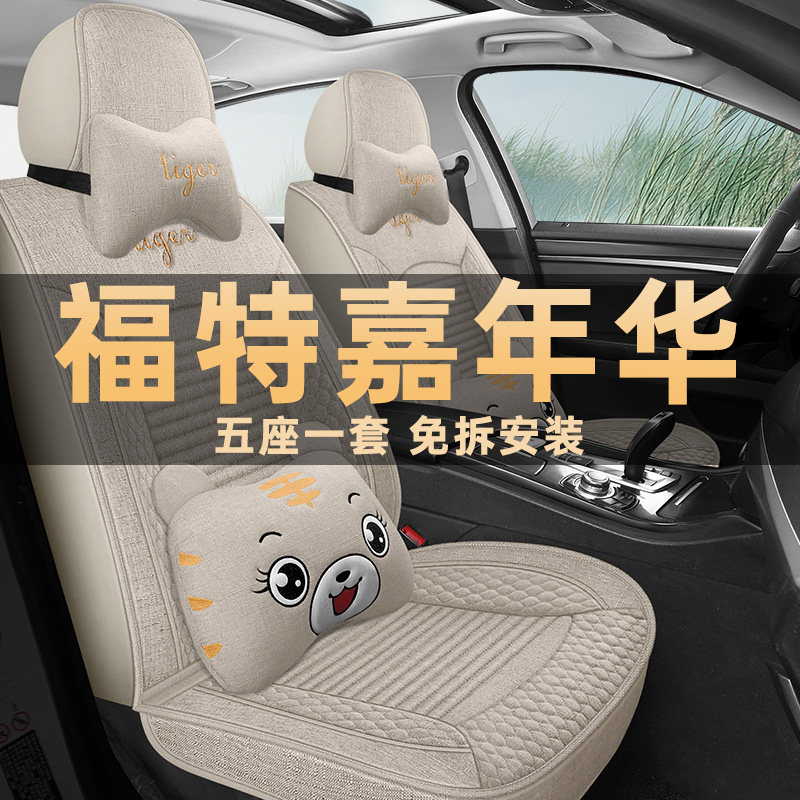 2013款福特嘉年华二箱三箱时尚型汽车坐垫四季通用座套亚麻全包围