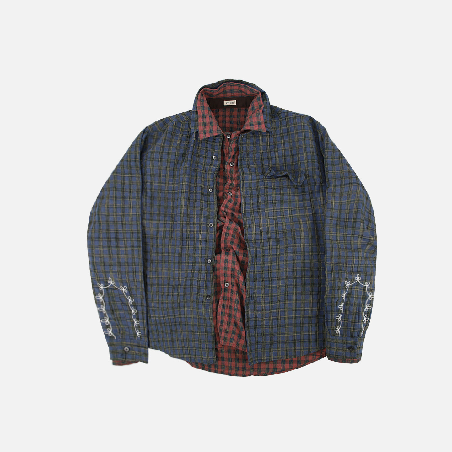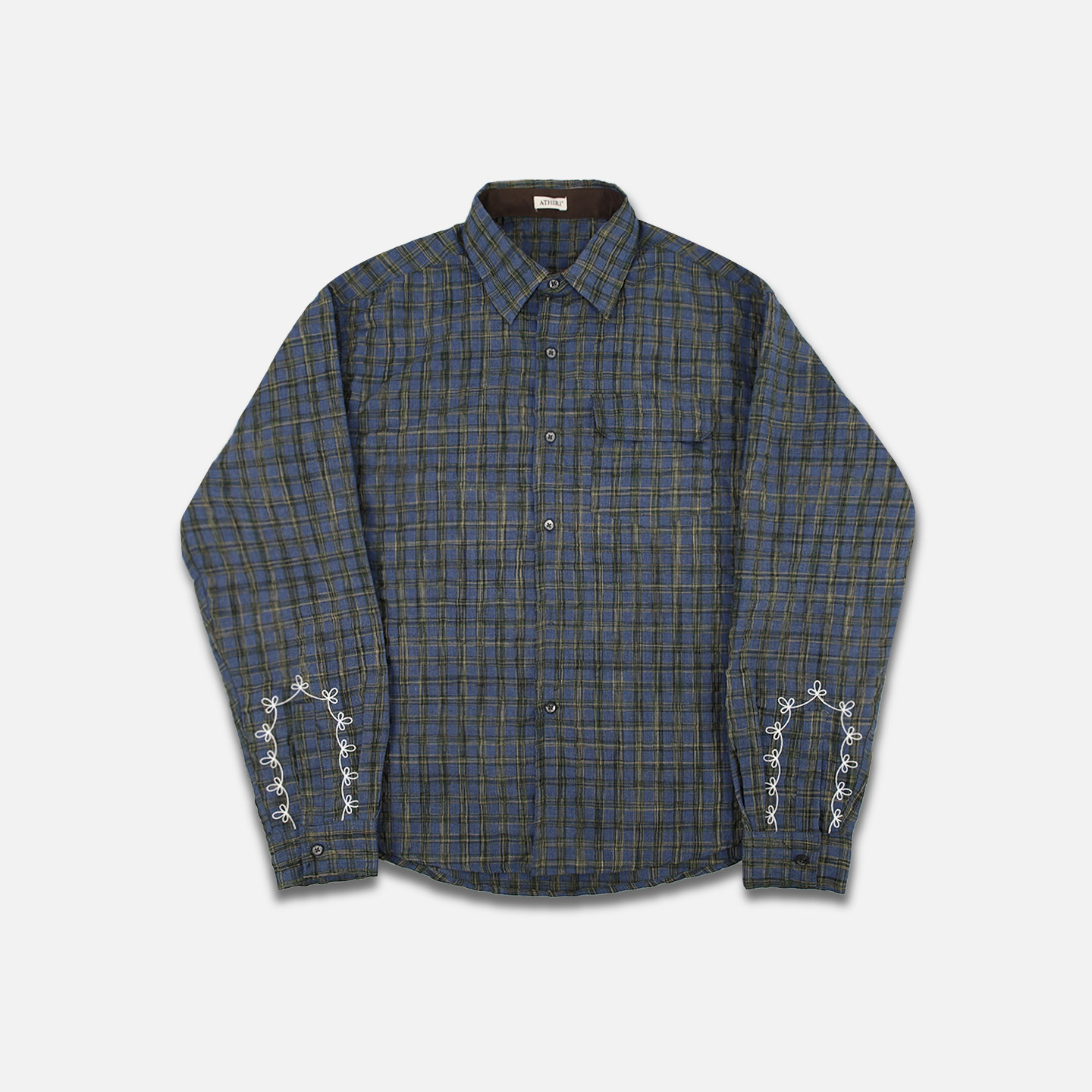 ATHIRI 复古格纹衬衫可塑造型设计百搭刺绣长袖衬衣潮流上衣