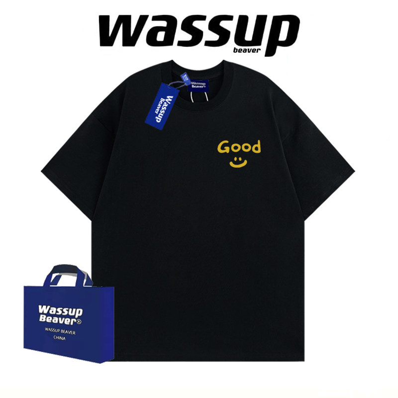 WASSUP BEAVER国潮good短袖T恤男女潮牌美式夏季宽松情侣纯棉上衣
