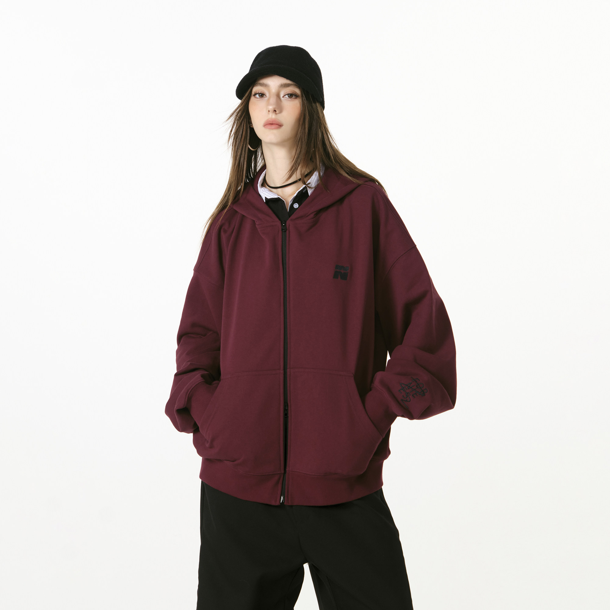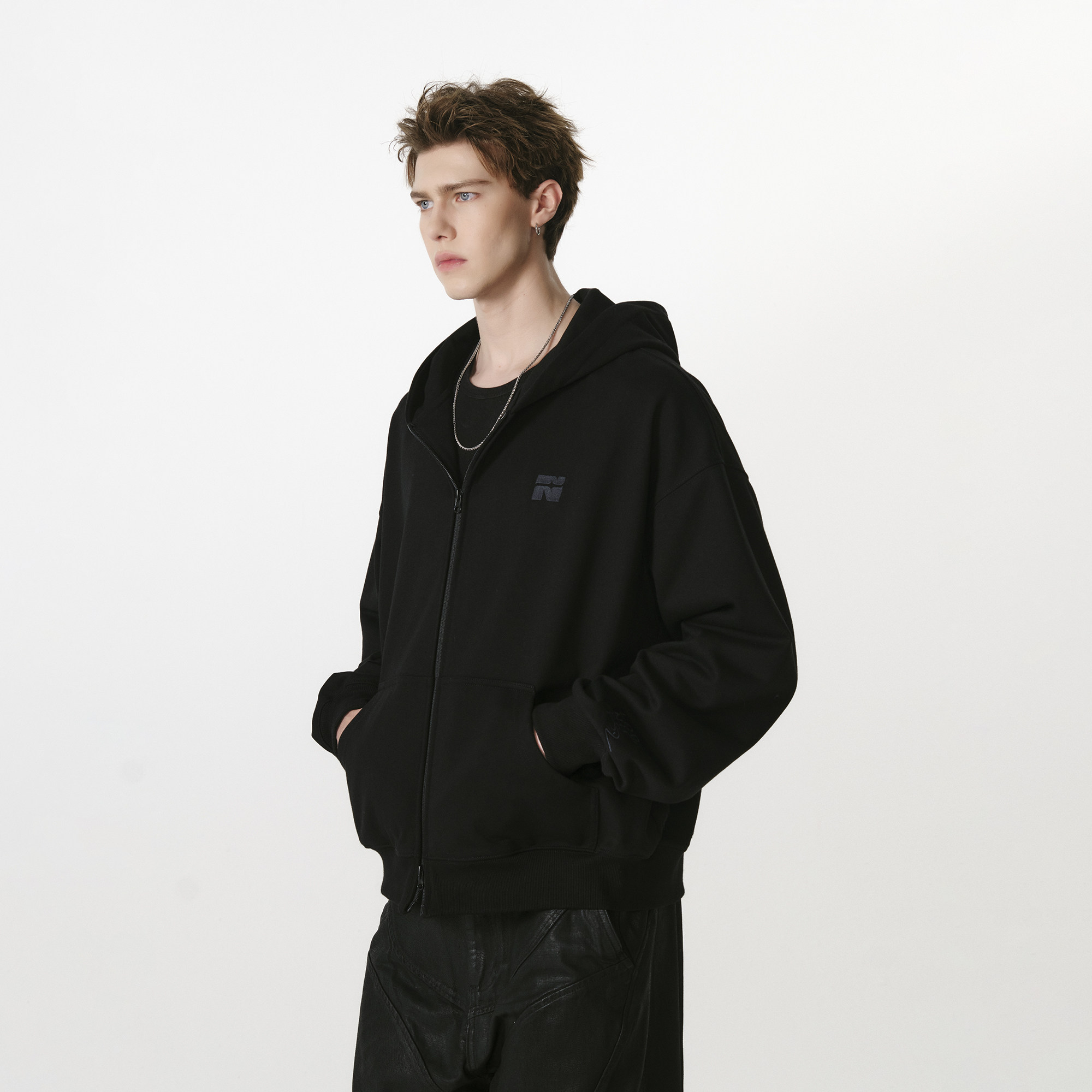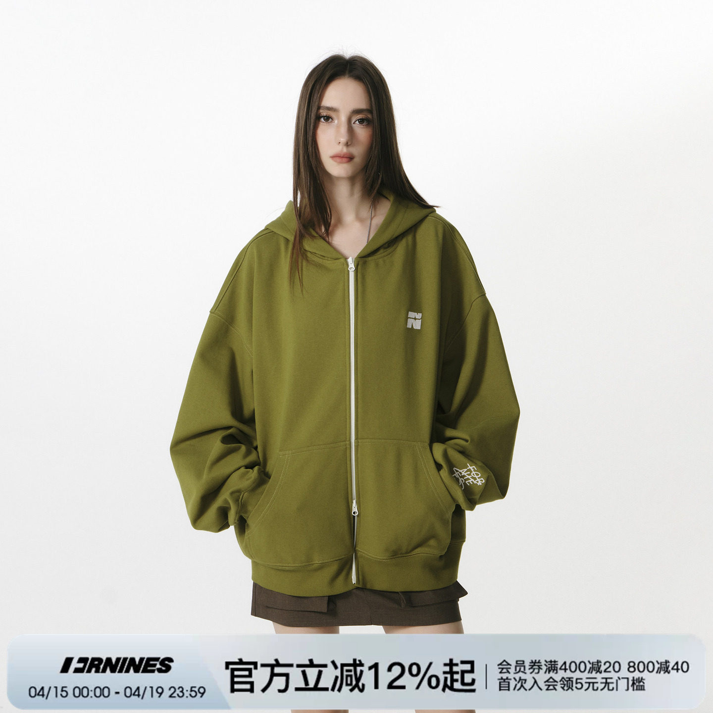 淘宝FORNINES刺绣重磅连帽衫卫衣男款国潮春秋季双拉链休闲百搭外套女