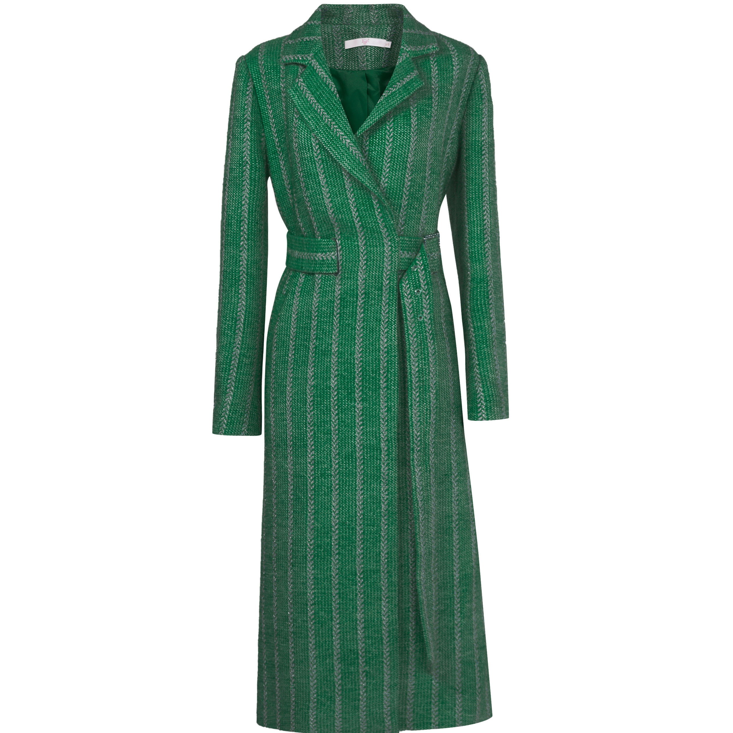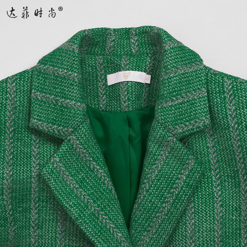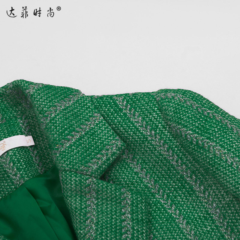 --------------------- 2026春季新款时尚大方西装领不规则腰带绣花绿色粗花呢大衣 --------------------- --------------------- 【原价】658元 【券后价】541元