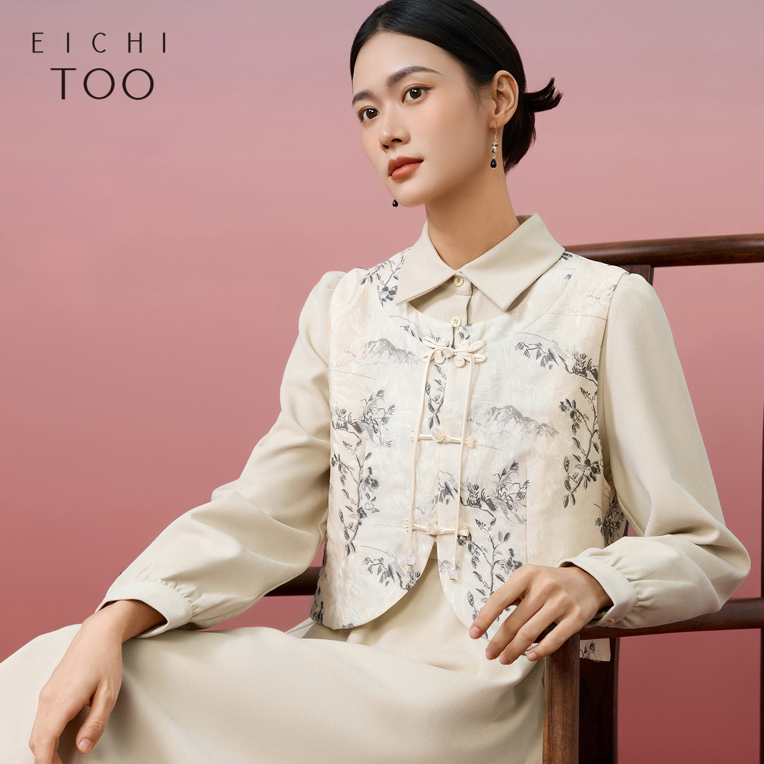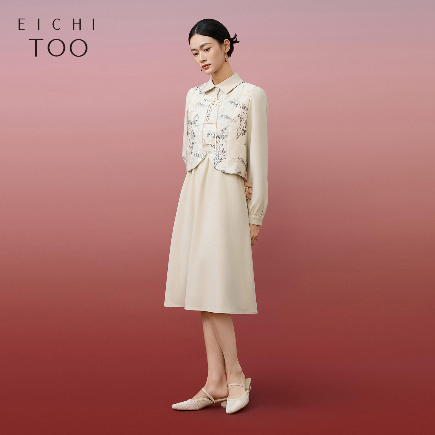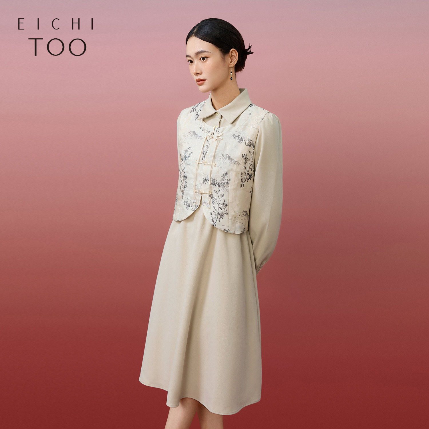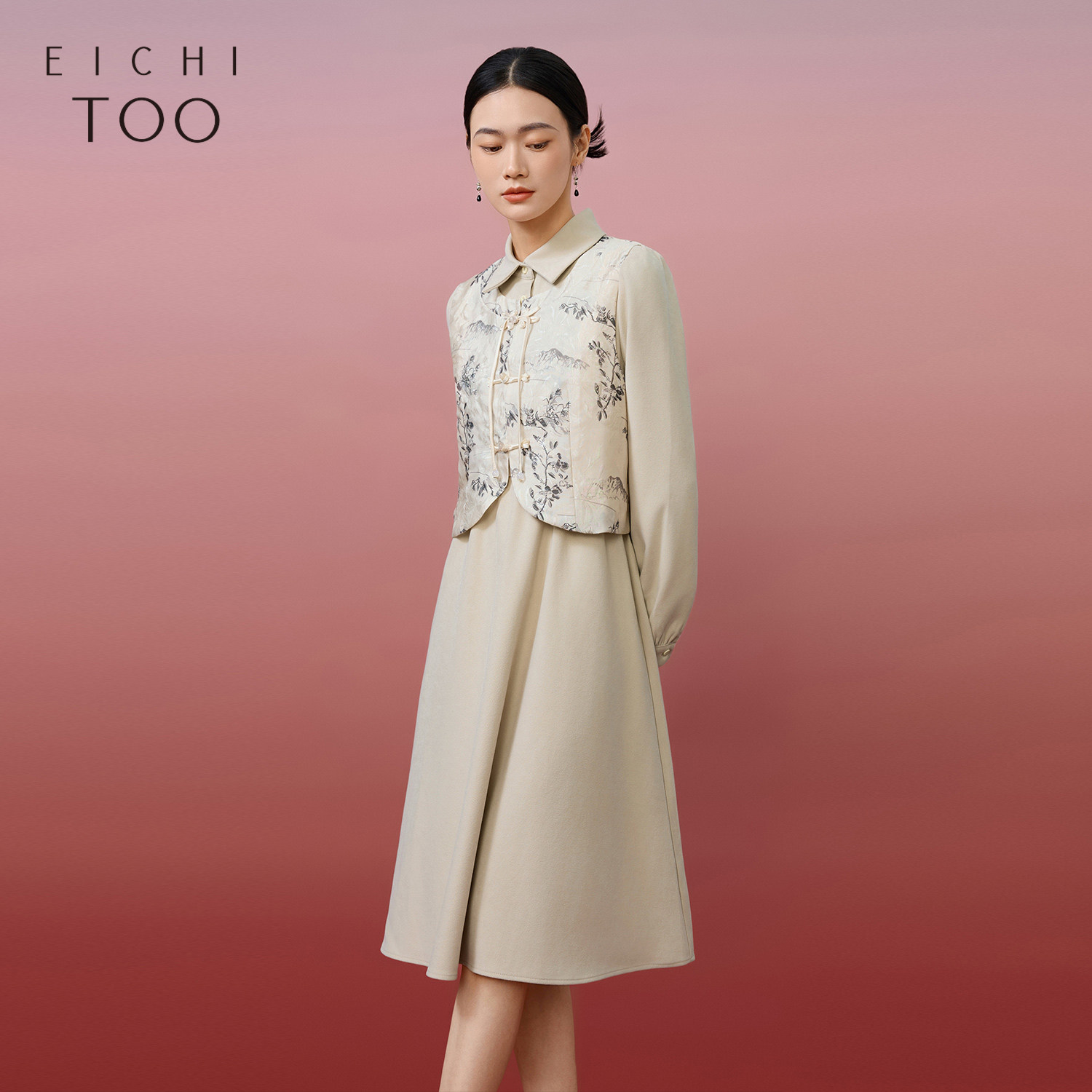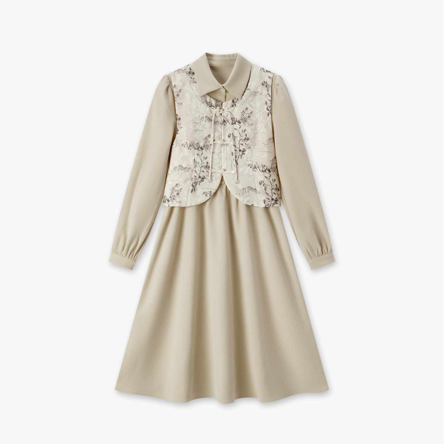 爱居兔新中式套装裙女秋季复古时尚两件式连衣裙