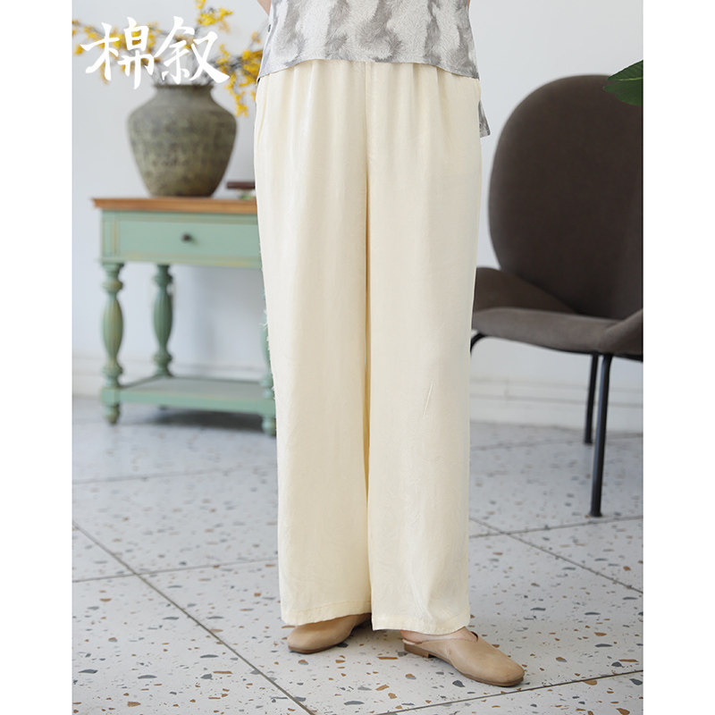棉叙夏季国潮风宽松松紧腰阔腿裤新中式提花直筒长裤女24268