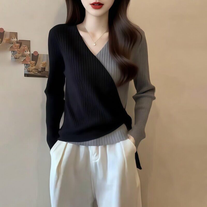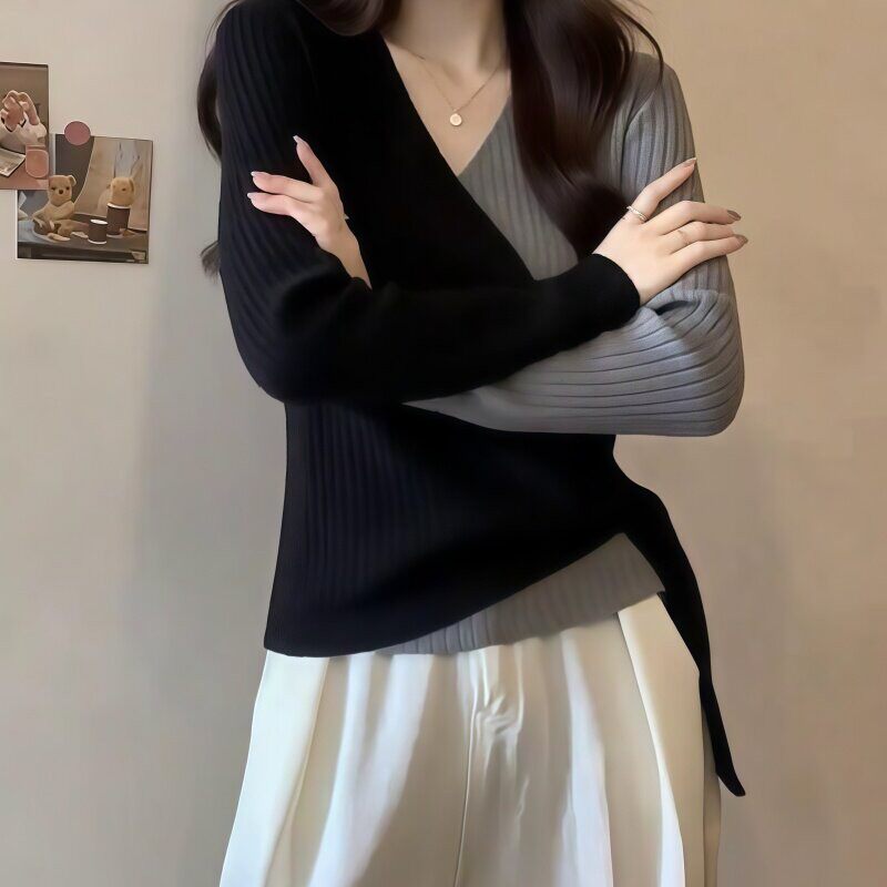 罗芬面料故事旗舰店女装秋冬气质洋气修身针织衫搭加厚直筒牛仔裤