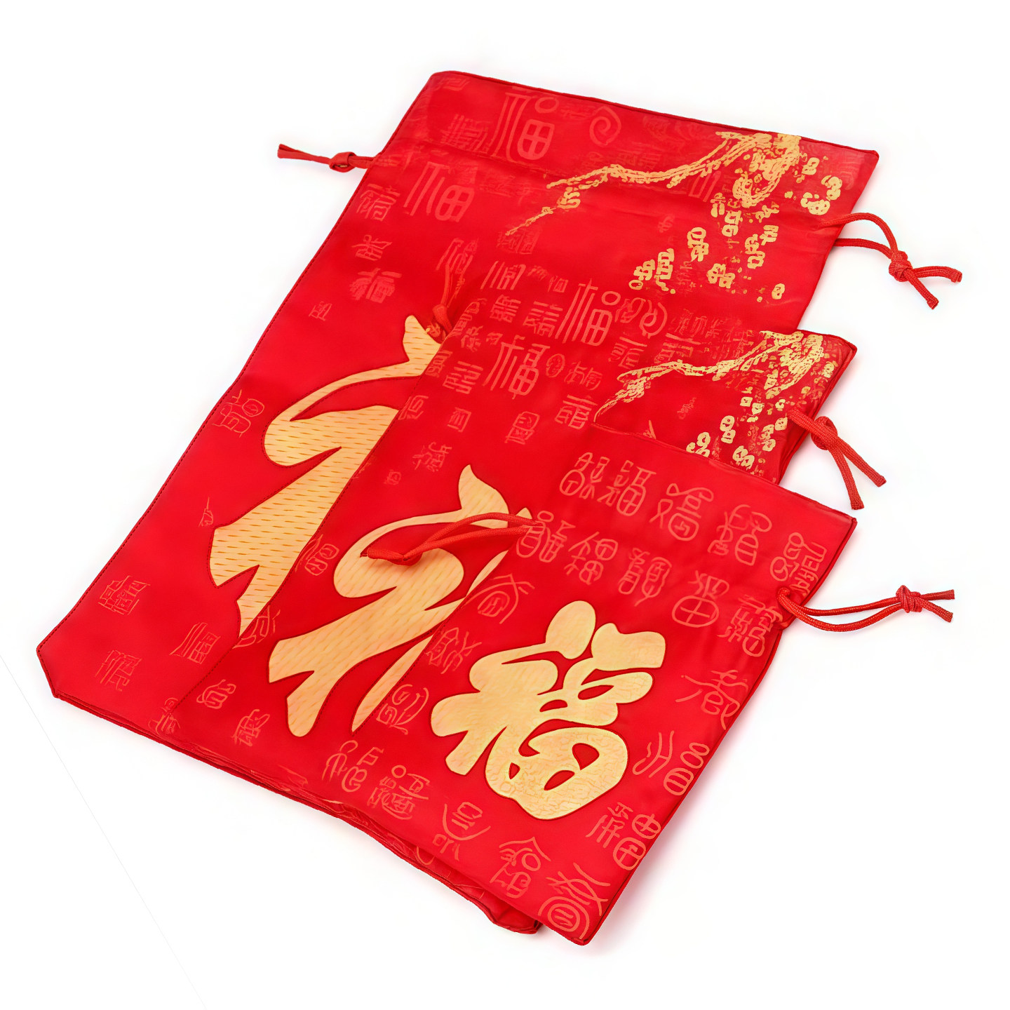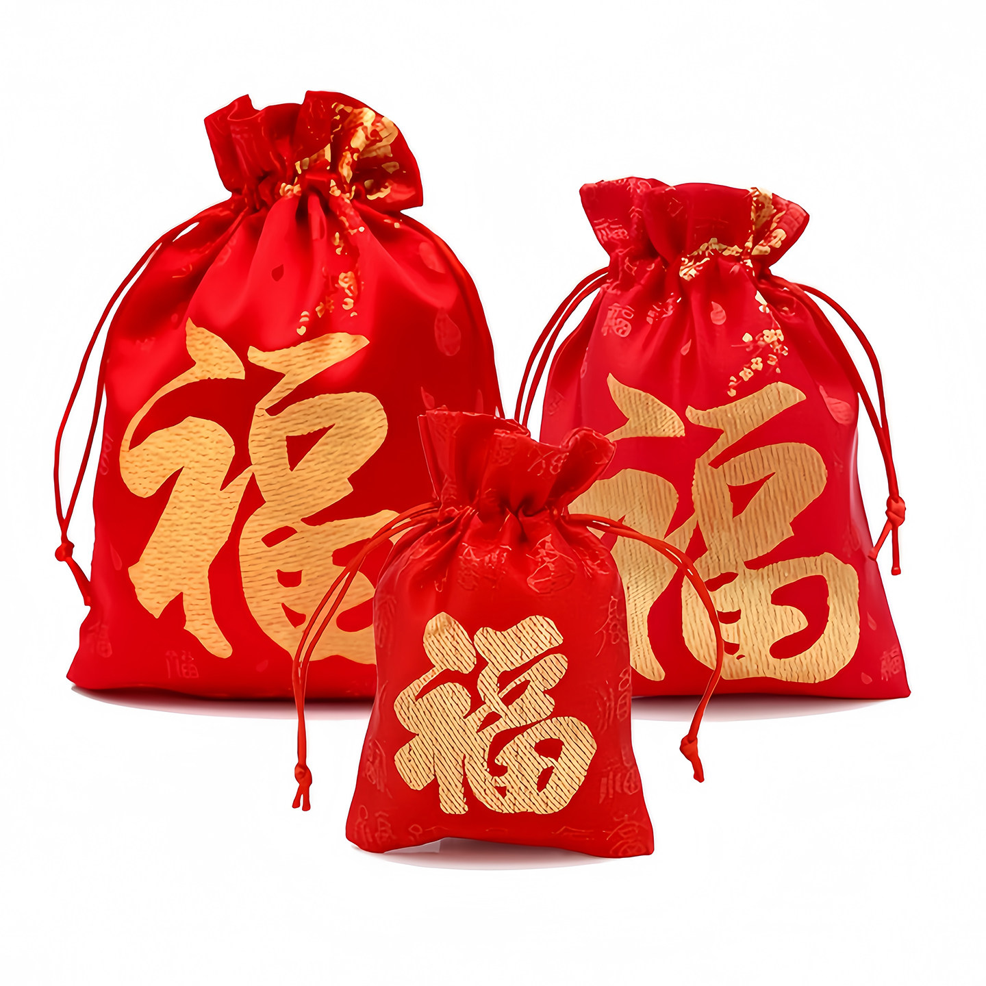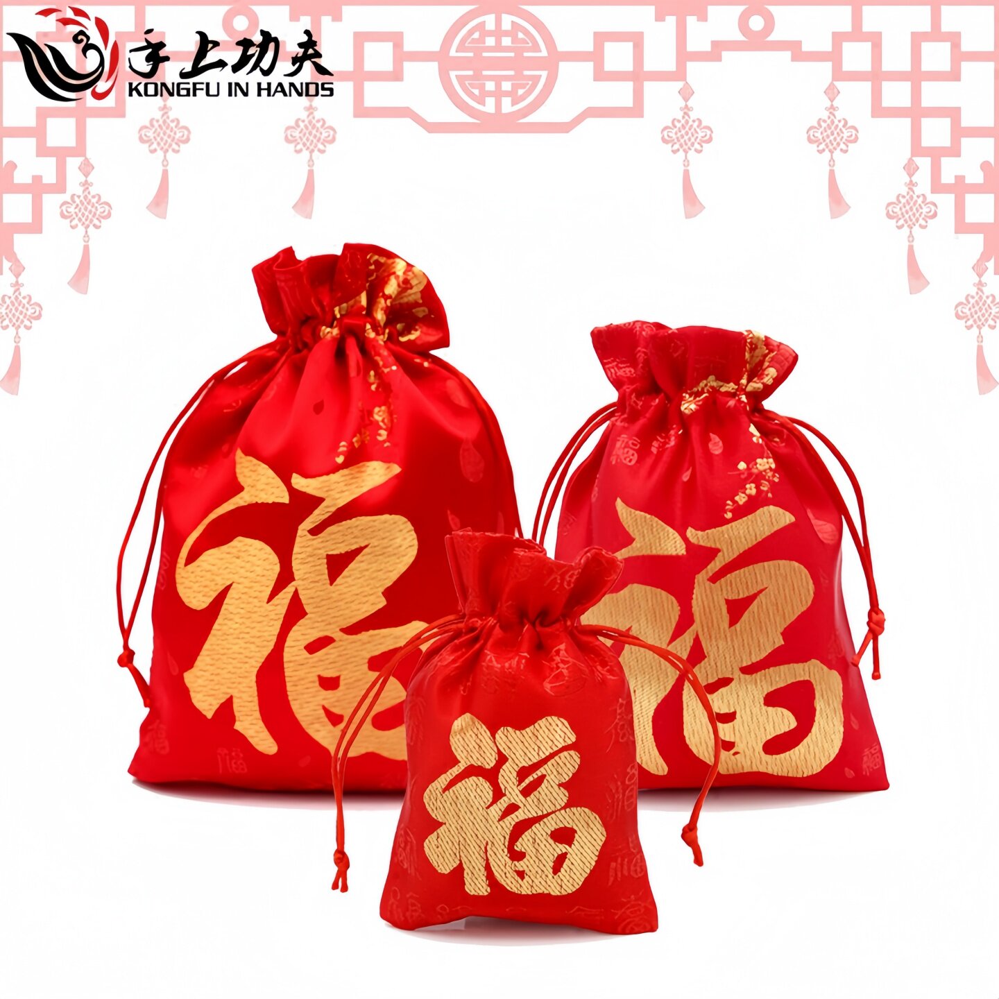 淘宝手上功夫喜庆中国红色首饰袋锦囊福字袋礼物福袋束口首饰袋子包邮