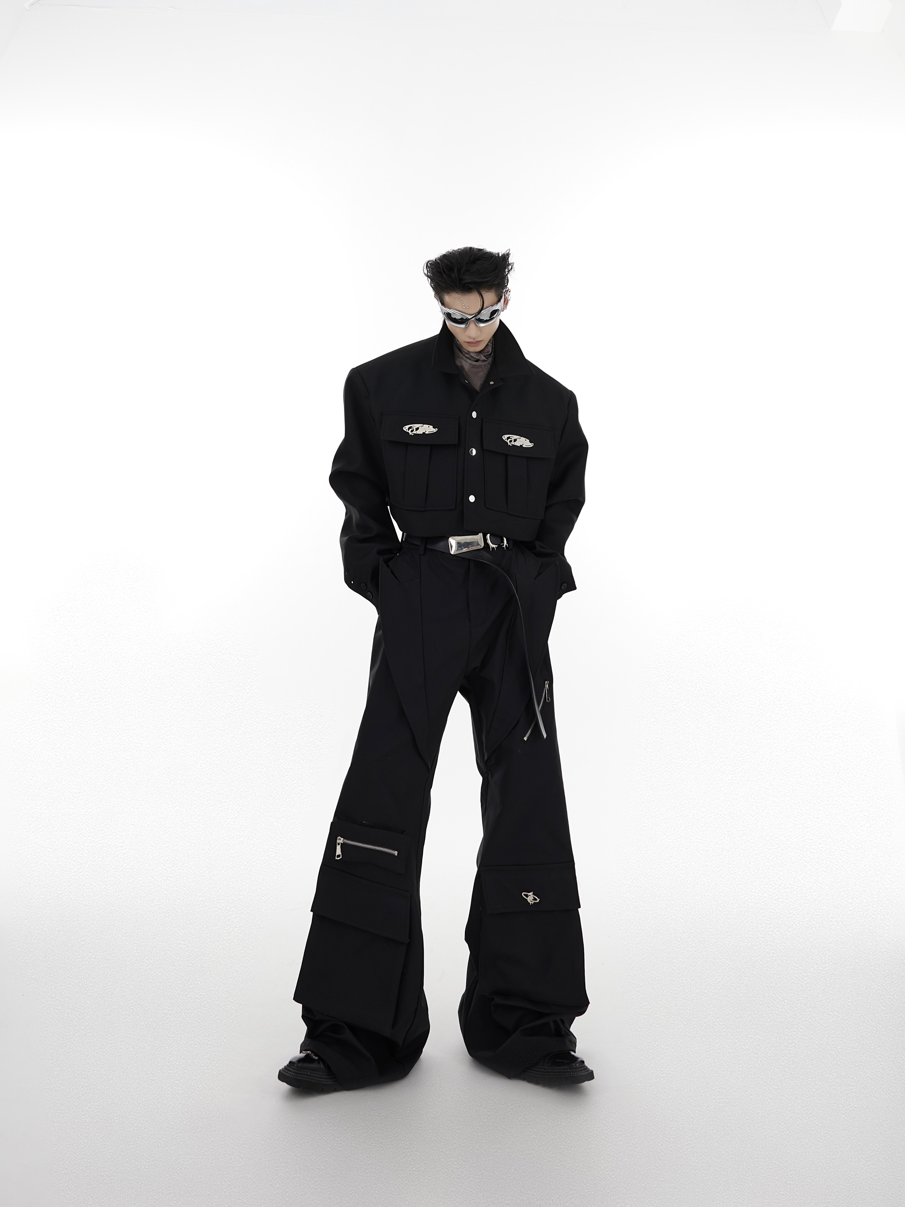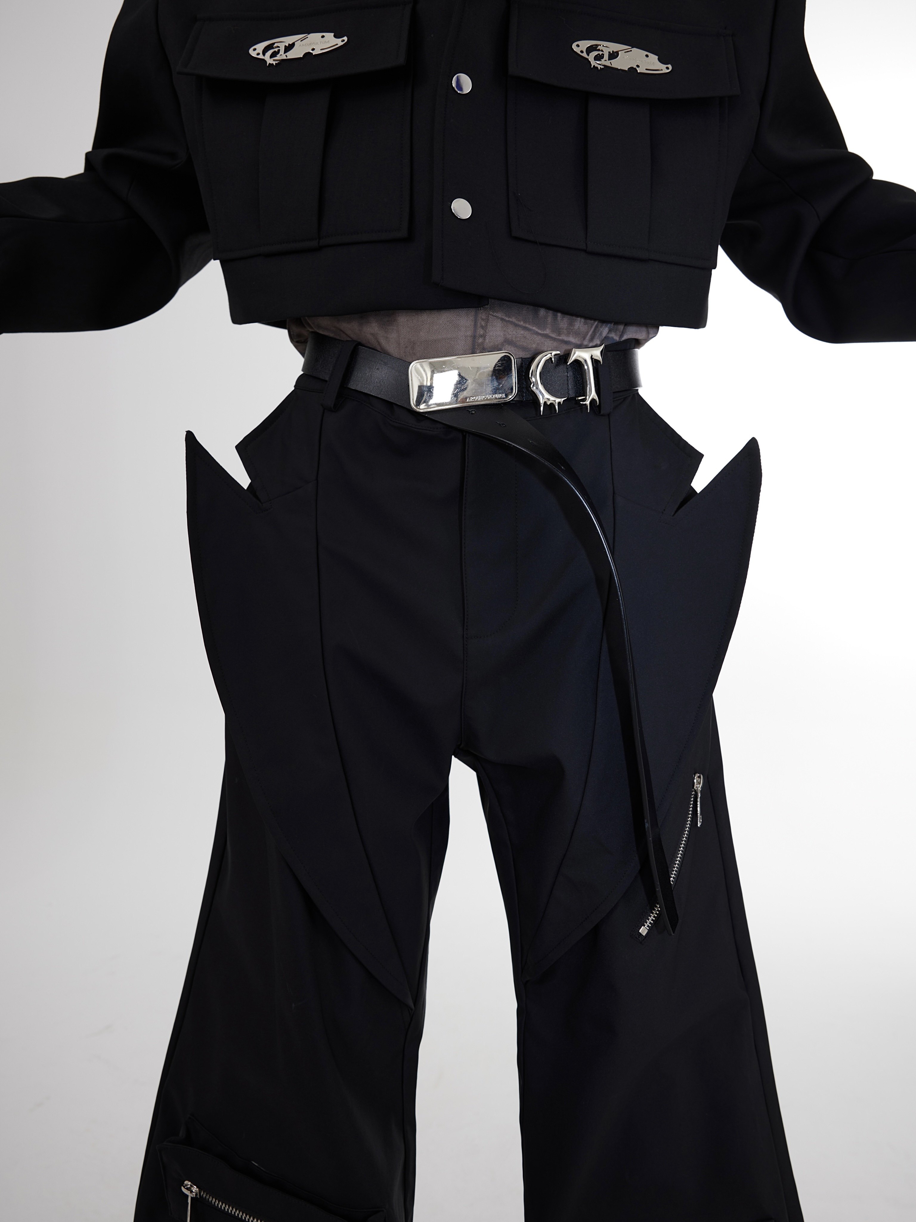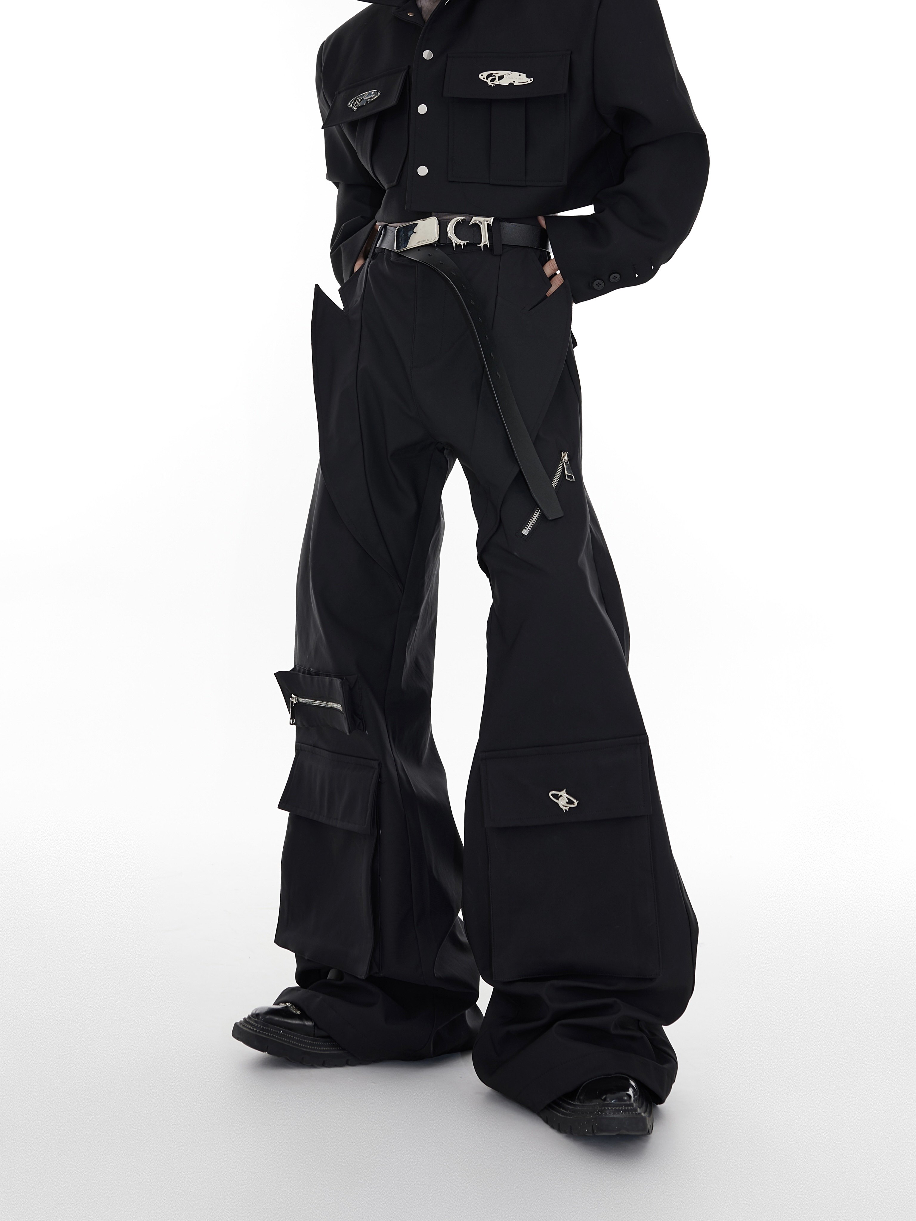 ArguE小众解构大口袋拼接西裤微喇叭高腰休闲裤金属设计感长裤
