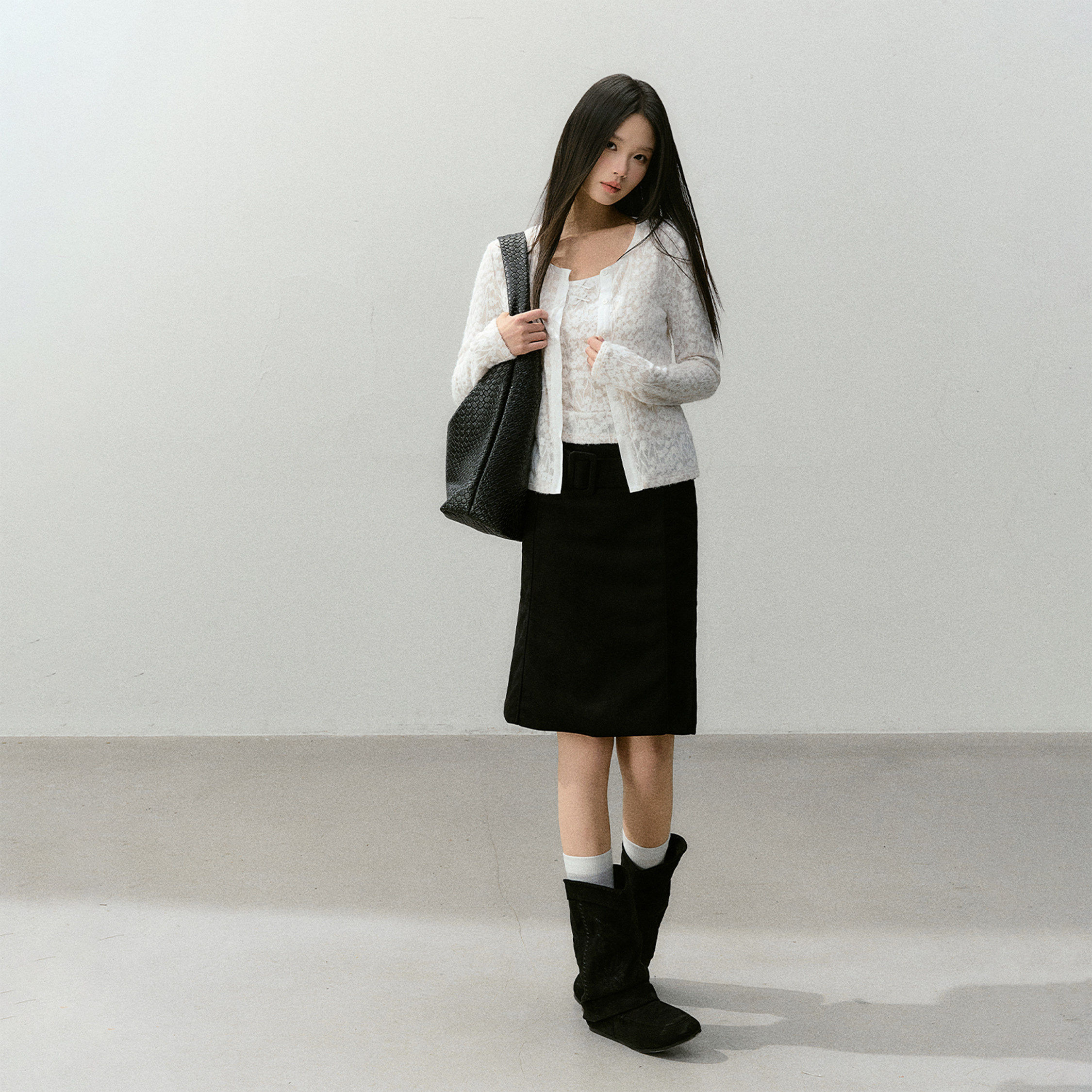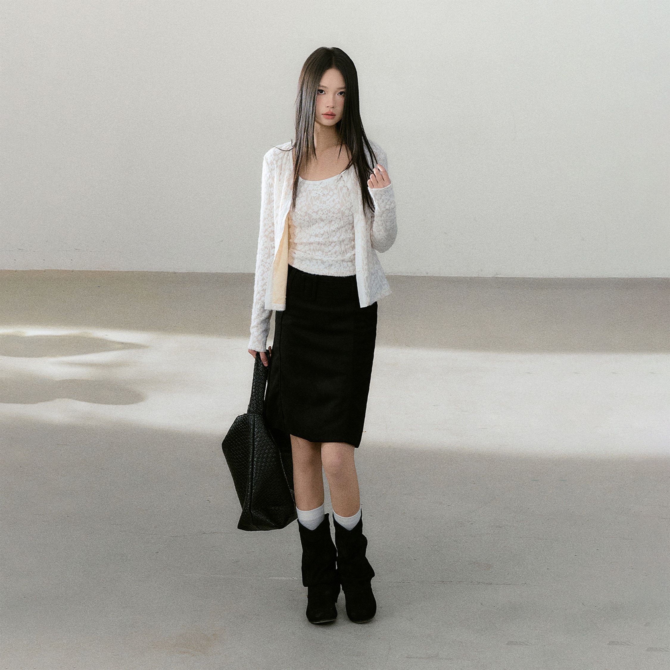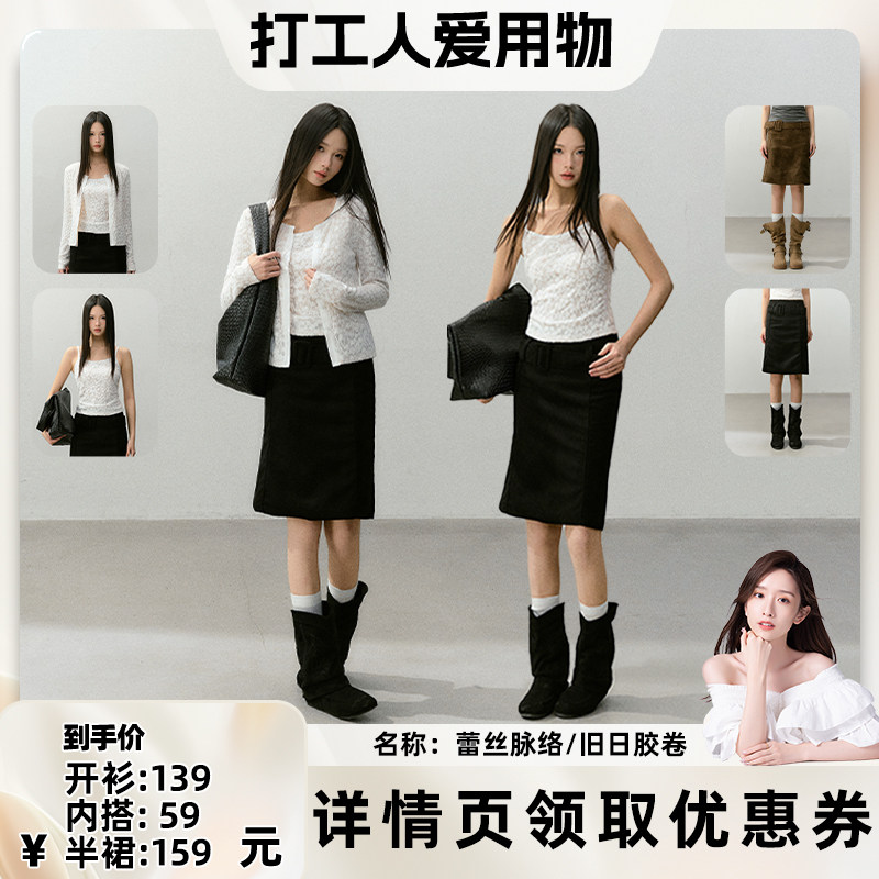 淘宝【晁然推荐】CyNi"蕾丝脉络"长袖蕾丝圆领开衫吊带叠穿薄款套装