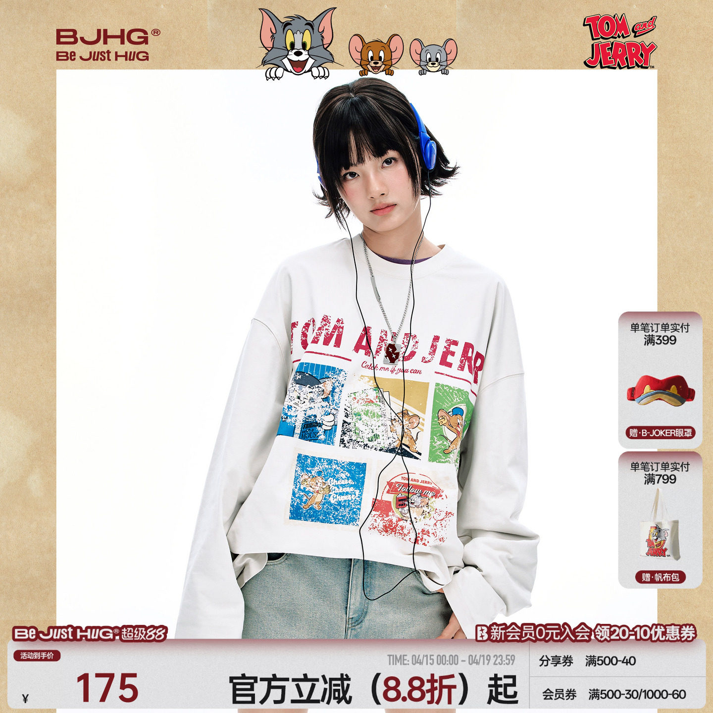--------------------- 【猫和老鼠联名】 BJHG不计后果长袖t恤男款春潮牌美式白色卫衣女 【原售价】199元 【现售价】175元 【推荐理由】