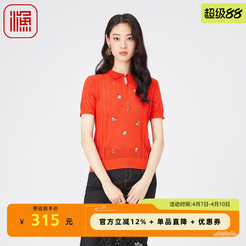 --------------------- 渔牌女装2024春夏新款镂空针织翻领短袖毛衣绣花休闲上衣FGGA1006 --------------------- --------------------- 【原价】1258元 【券后价】314元