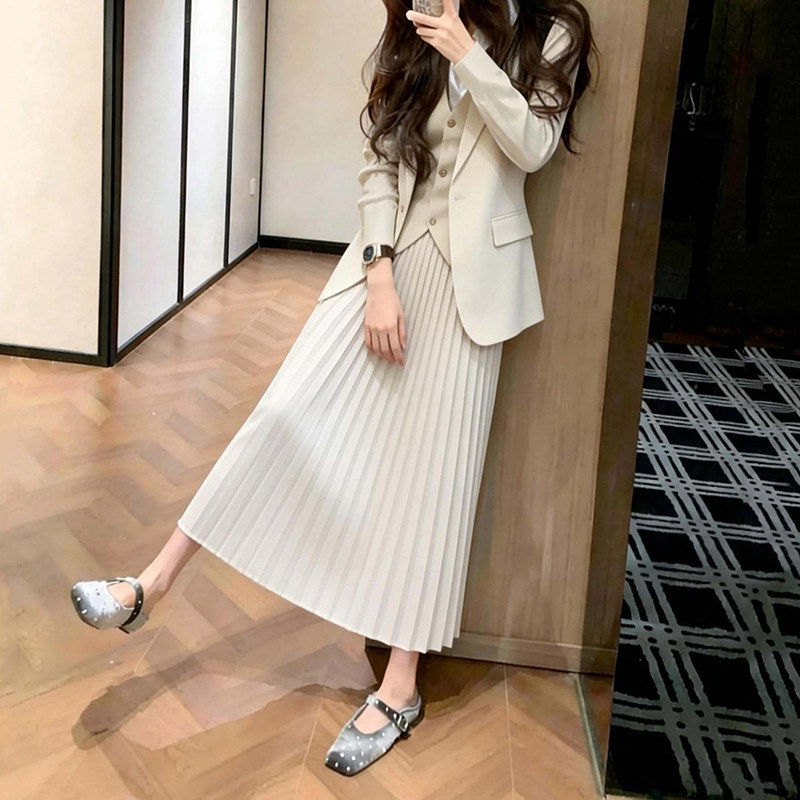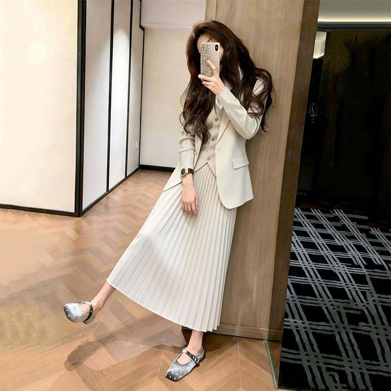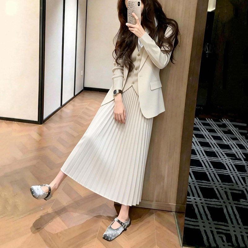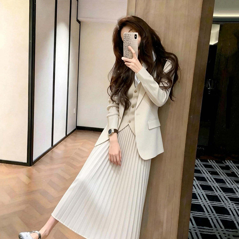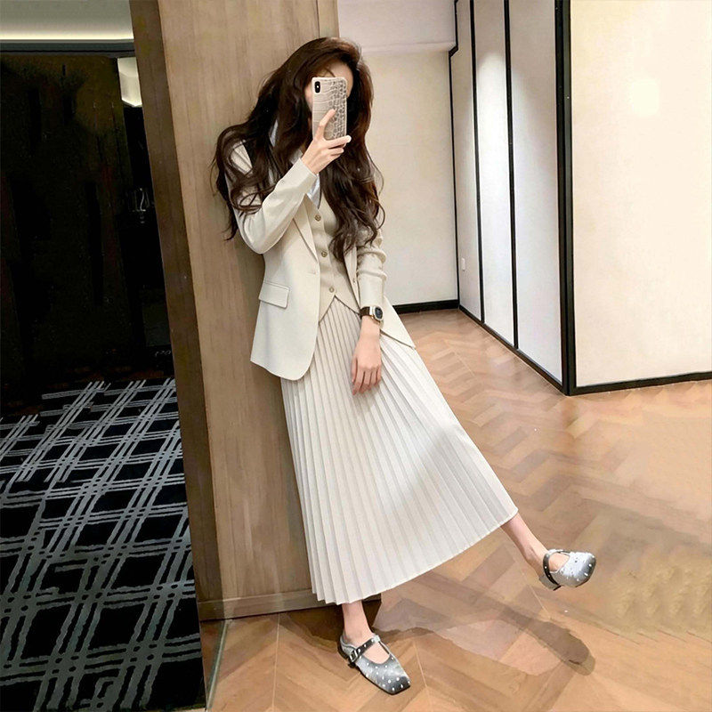 气质白色外套马甲半身裙三件套女春小个子高级感超好看穿搭一整套