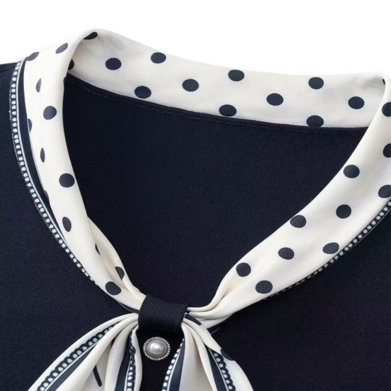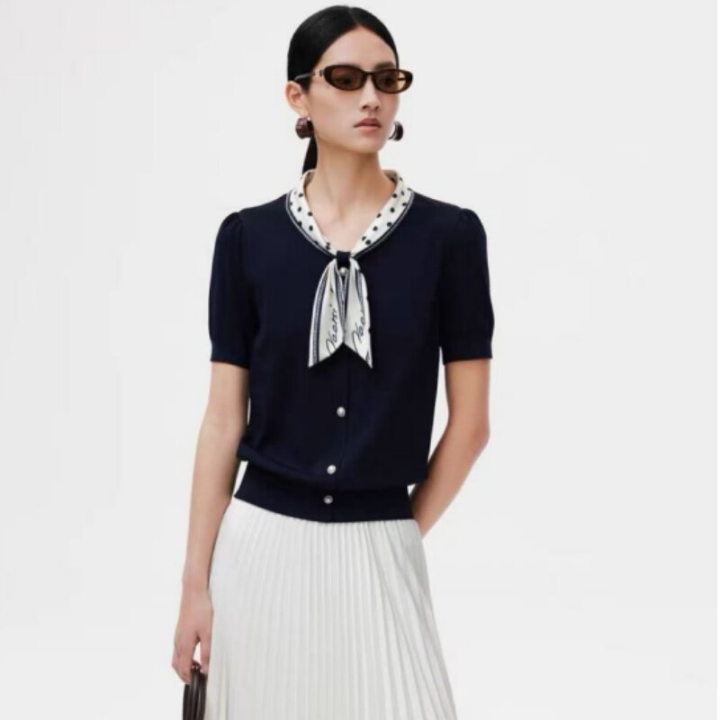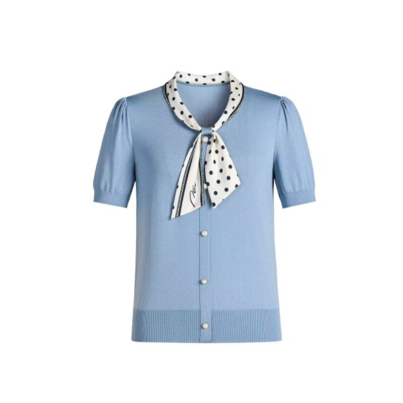 2026夏季新品女装娜家商场同款高级感撞色圆点丝巾领显瘦针织衫