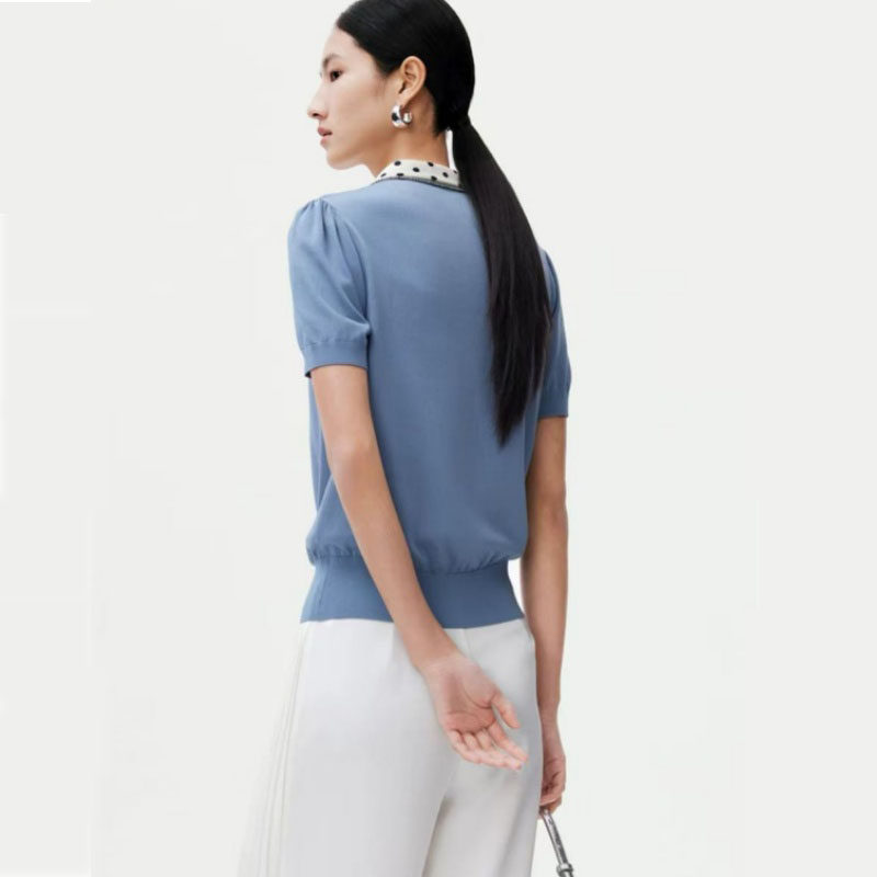 --------------------- 2026夏季新品女装娜家商场同款高级感撞色圆点丝巾领显瘦针织衫 --------------------- --------------------- 【原价】299元 【券后价】253元