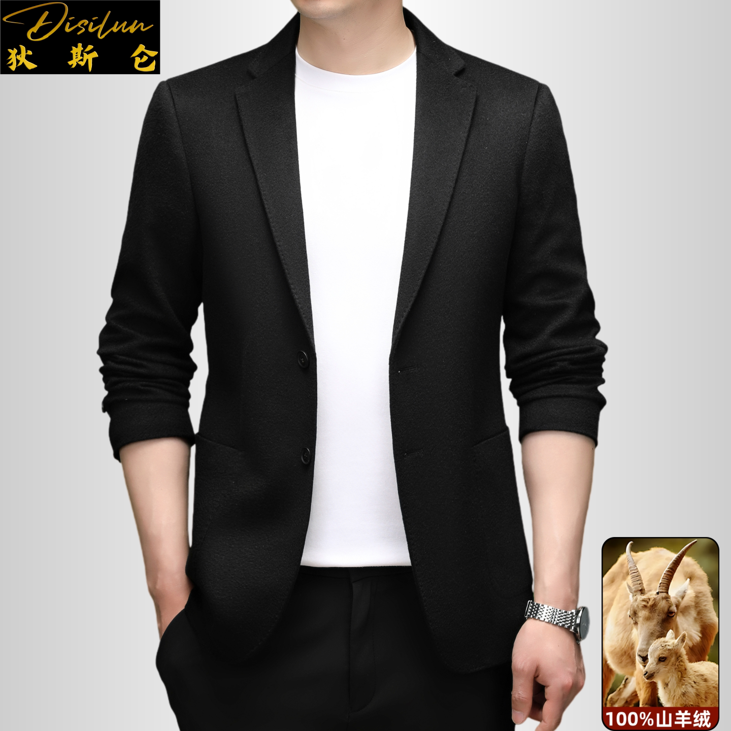 狄斯仑100%山羊绒西服男商务休闲免烫外套2026春季新款
