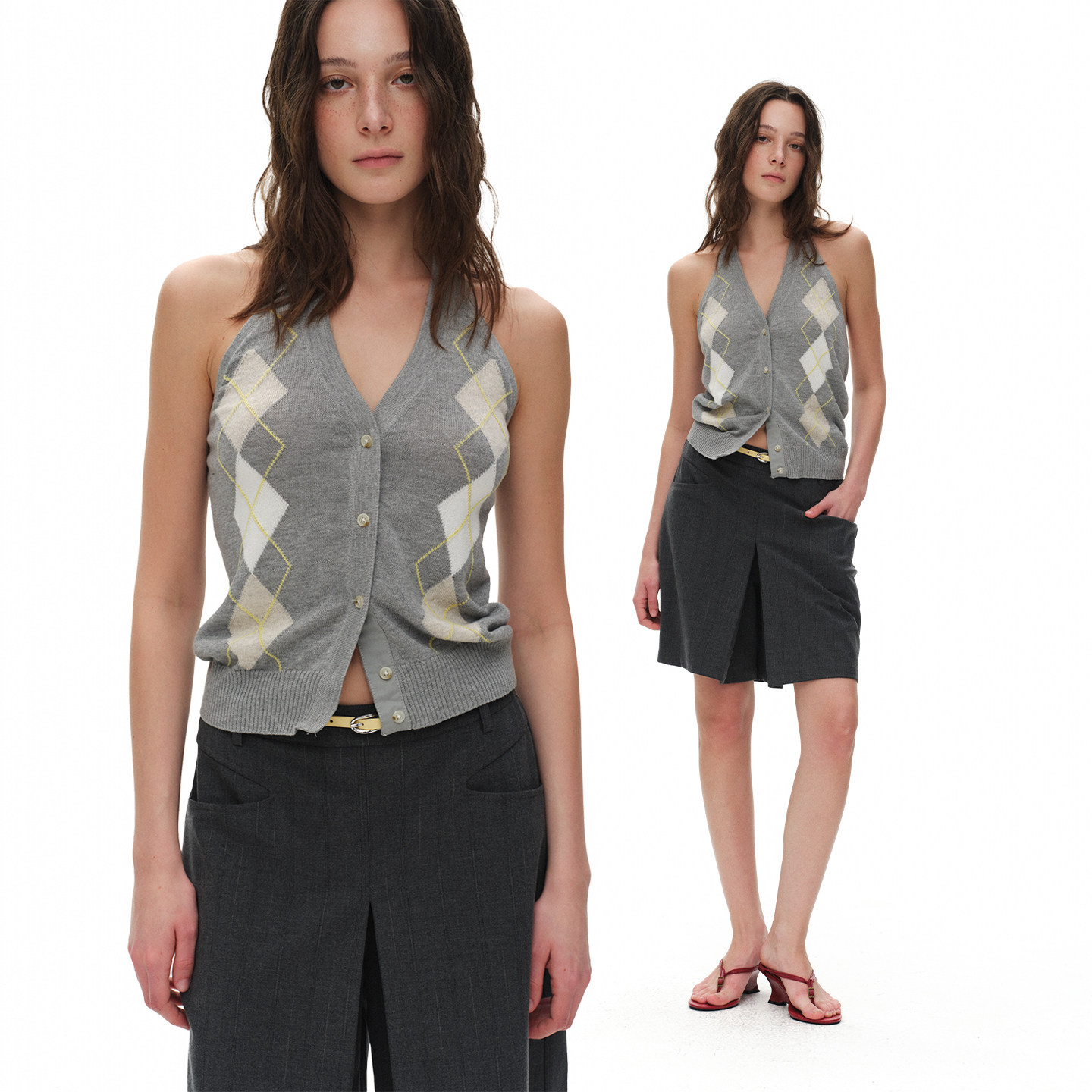 --------------------- ReAimNess*格纹提花挂脖针织马甲 【原售价】219元 【现售价】192元 【推荐理由】