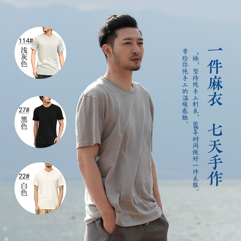 --------------------- 楠棉麻短袖t恤男 中国风夏男上衣男士中式宽松麻圆领T恤洛青 【原售价】251元 【现售价】158元 【推荐理由】
