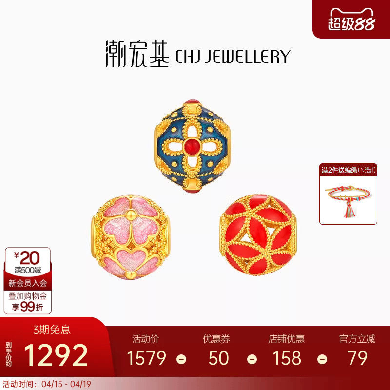 --------------------- 潮宏基花丝绣球黄金串珠足金转运珠5D硬金珐琅国潮隔珠生日礼物 --------------------- --------------------- 【原价】1580元 【券后价】1242元