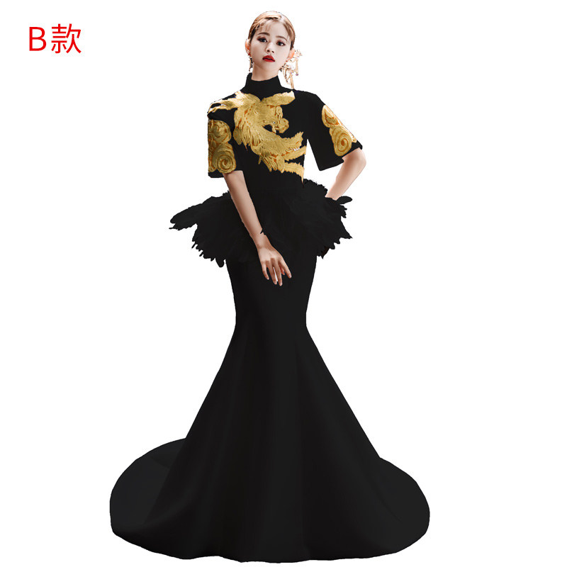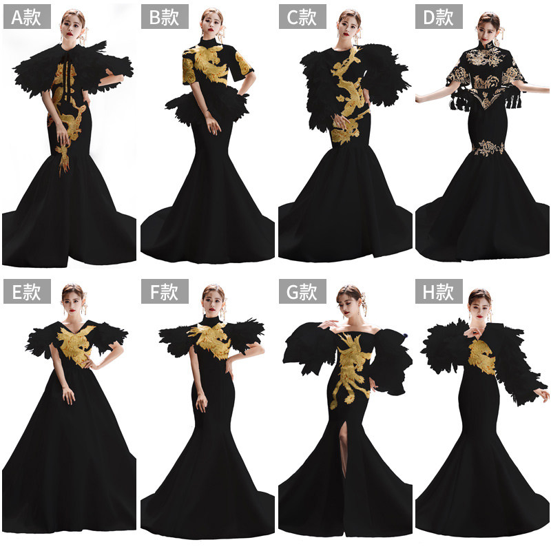 --------------------- 中国风黑色主持人礼服女气质端庄大气长款模特走秀舞台演出旗袍春 【原售价】699元 【现售价】500元 【推荐理由】