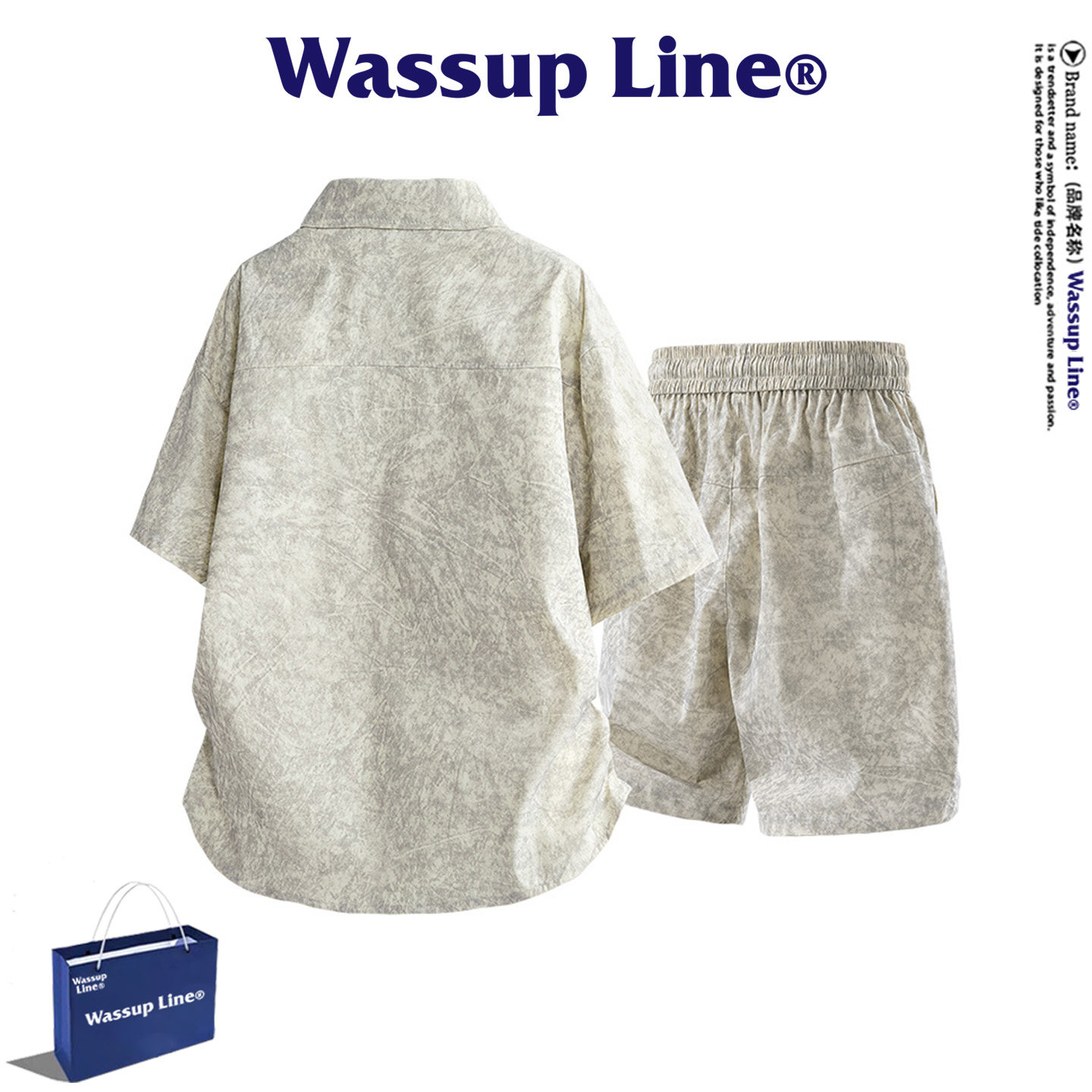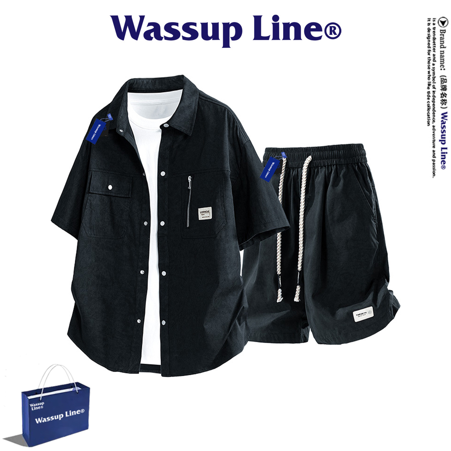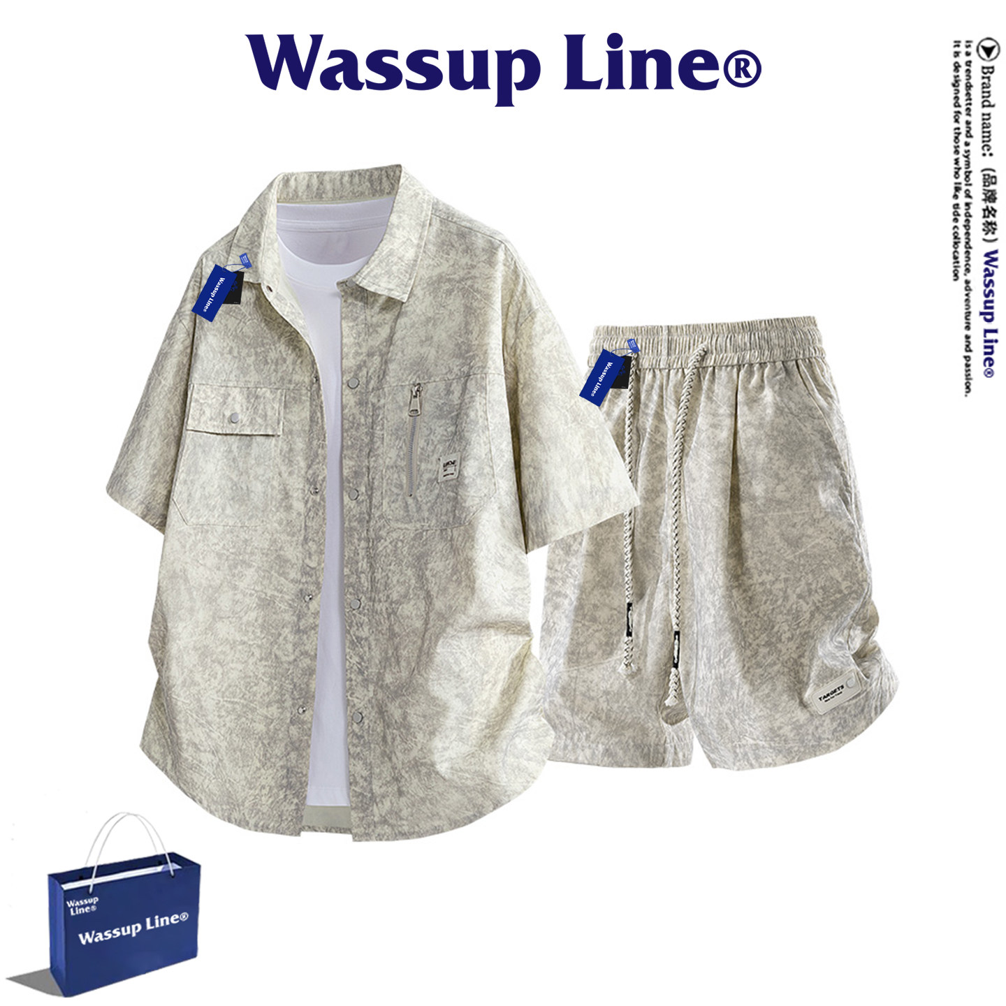 WASSUP Line潮牌户外运动套装男夏季短袖衬衫休闲五分裤两件套