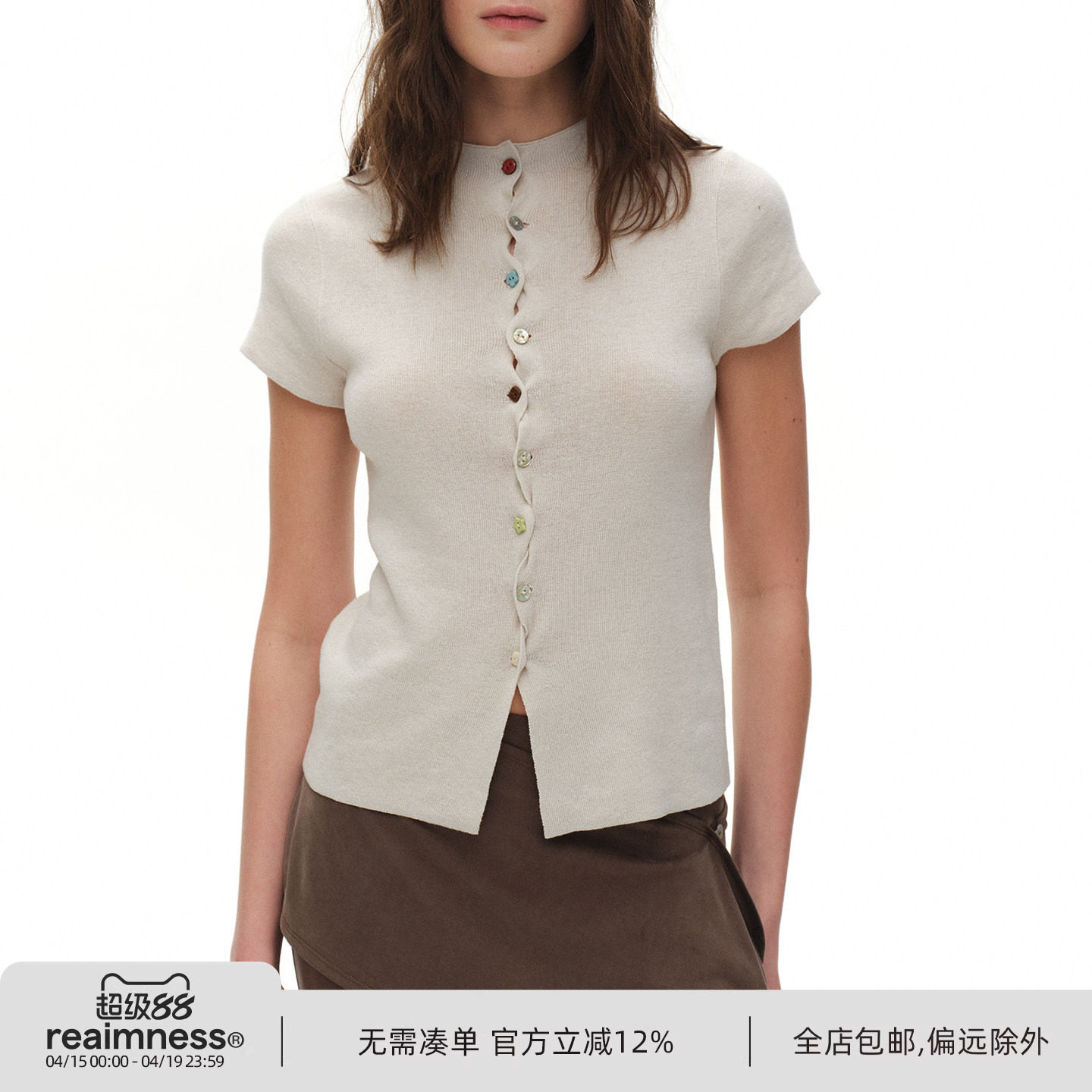 ReAimNess*趣味多纽扣设计 夏日透气薄款针织开衫上衣女