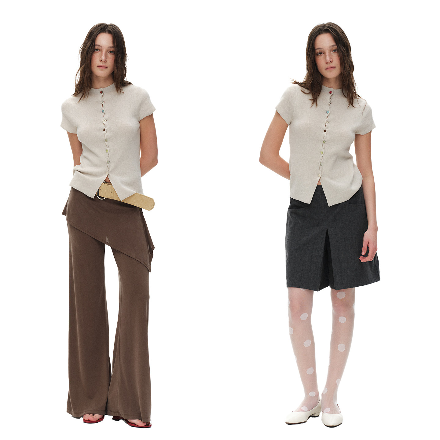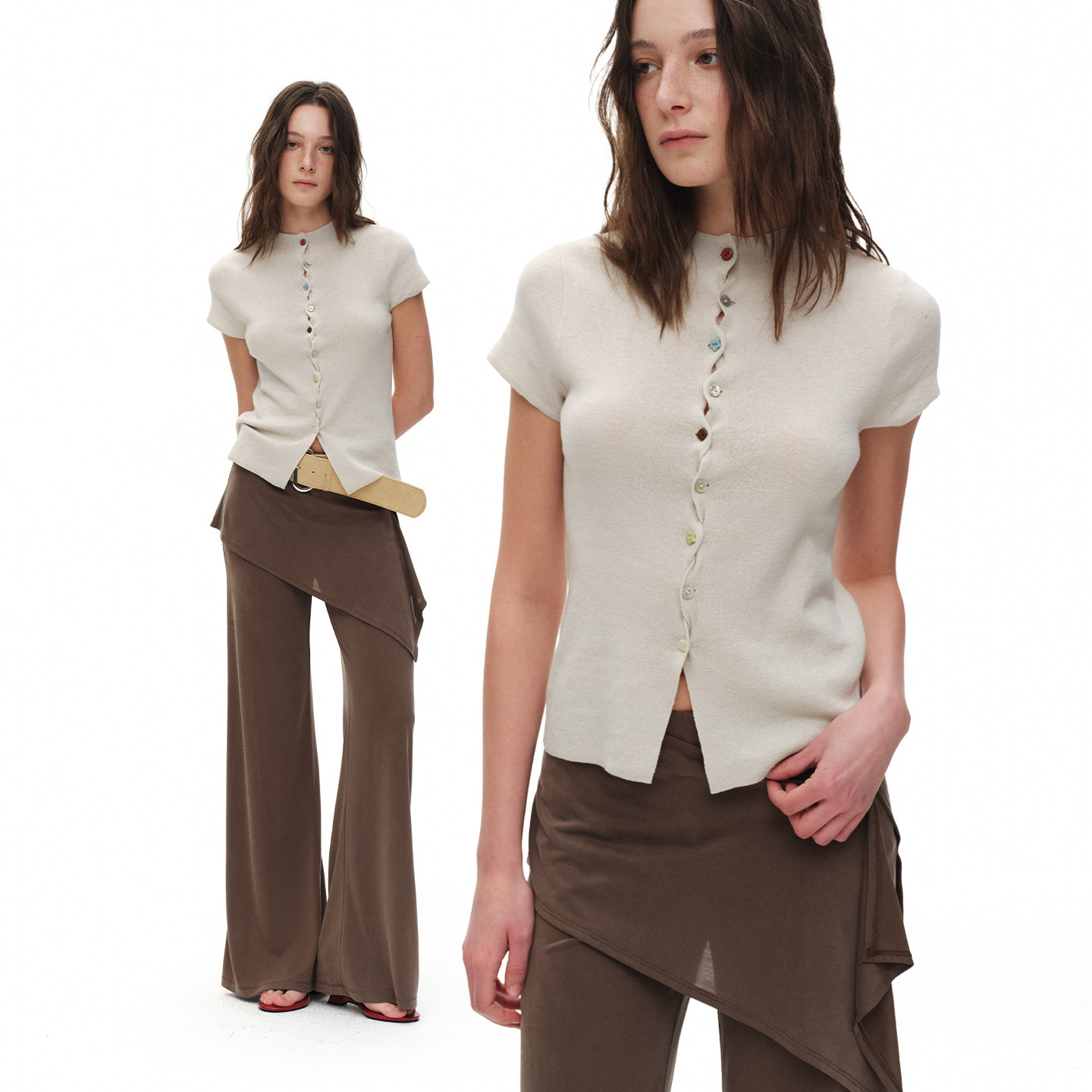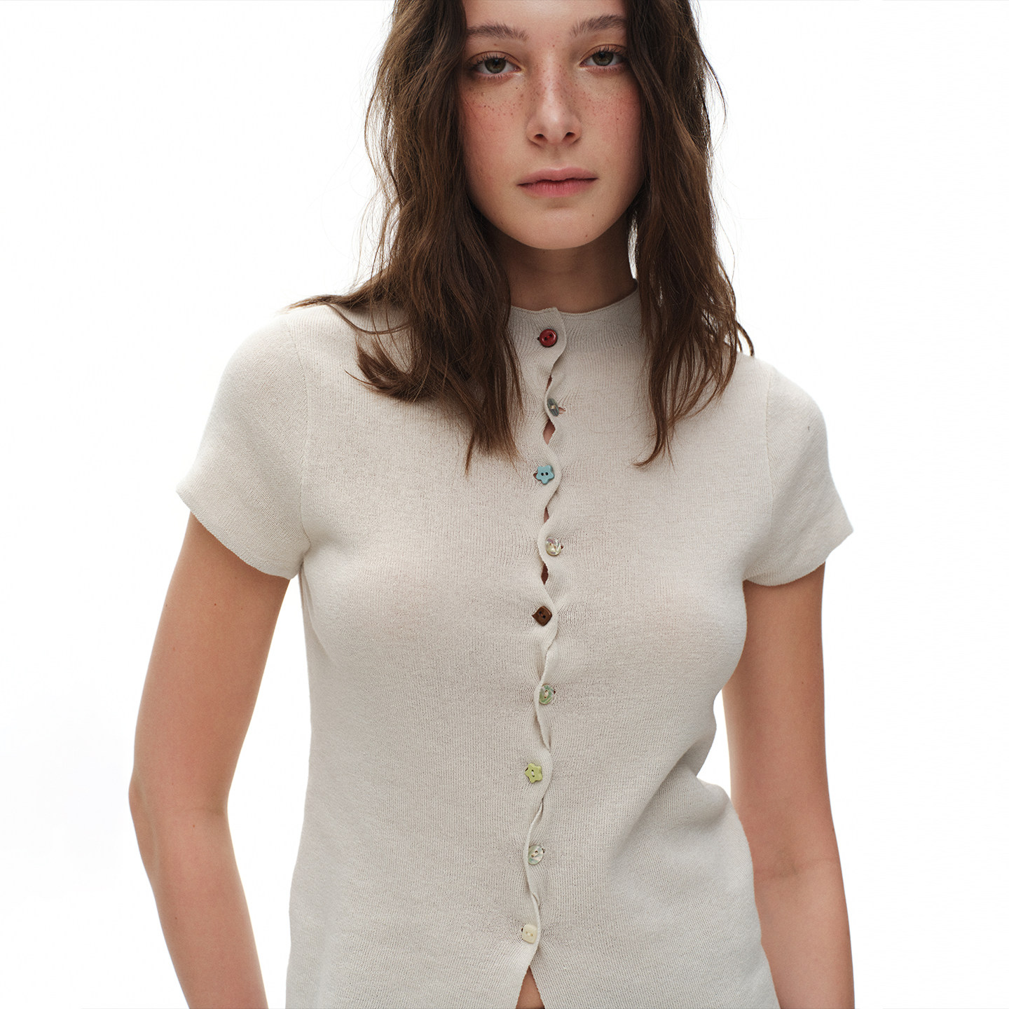 --------------------- ReAimNess*趣味多纽扣设计 夏日透气薄款针织开衫上衣女 【原售价】219元 【现售价】192元 【推荐理由】